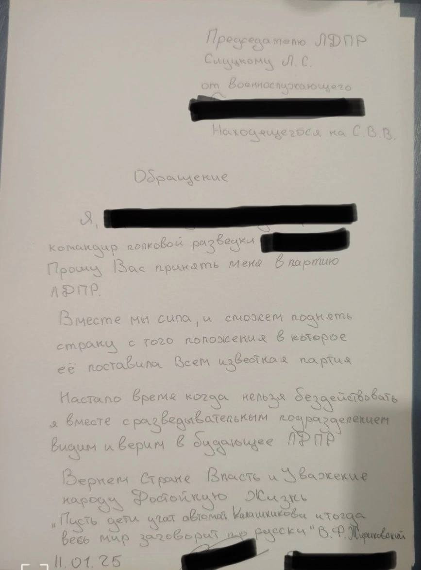 Участник СВО написал письмо о желании вступить в ЛДПР Леониду Слуцкому прямо с фронта