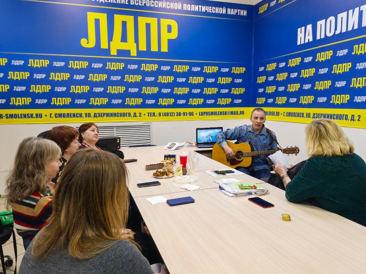 Члены клуба серебряных волонтеров культуры «Мы помним ваши имена» в стенах Штаба ЛДПР провели первую встречу-акцию «Уникальные люди Смоленска» с Юрием Москалевым, поэтом, писателем, краеведом, музыкантом, спортсменом, переводчиком, участником Международных марафонов «Бег дружбы»