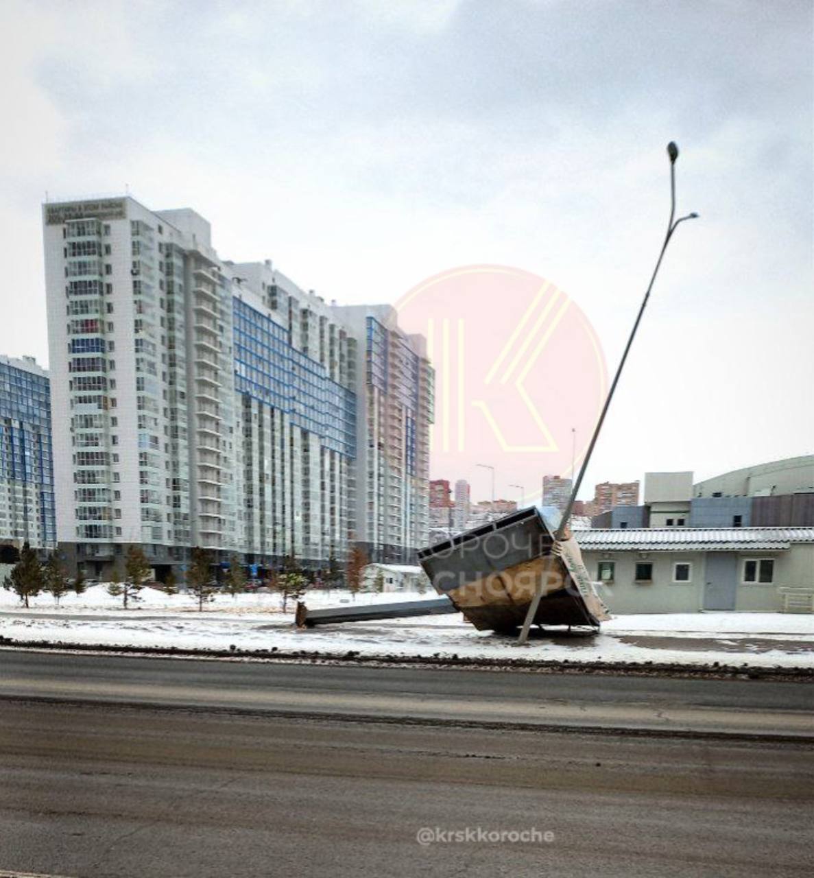 Незаконно установленный баннер в Тихих Зорях упал от ветра. Конструкция, размещённая вдоль дороги, могла обрушиться как на пешеходов, так и на водителей. Руководитель фракции ЛДПР в Красноярском горсовете Семён Сендерский потребовал навести порядок в сфере наружной рекламы города