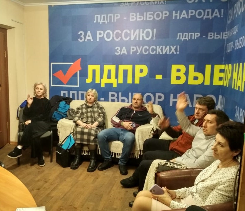 Коллеги по партии из Петропавловска, Елизова и Вилючинска собрались, чтобы принять в партию новых членов ЛДПР. Ими оказались трое елизовчан, в том числе супруги П. Это уже стало доброй традицией, когда заявления в партию пишут целыми семьями.