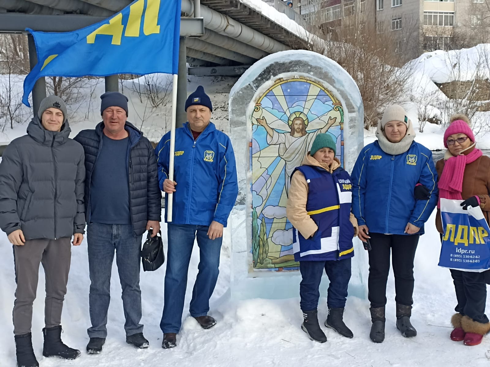 Партийцы в Горно-Алтайске приняли участие в Крещенских купаниях и поздравили горожан с праздником