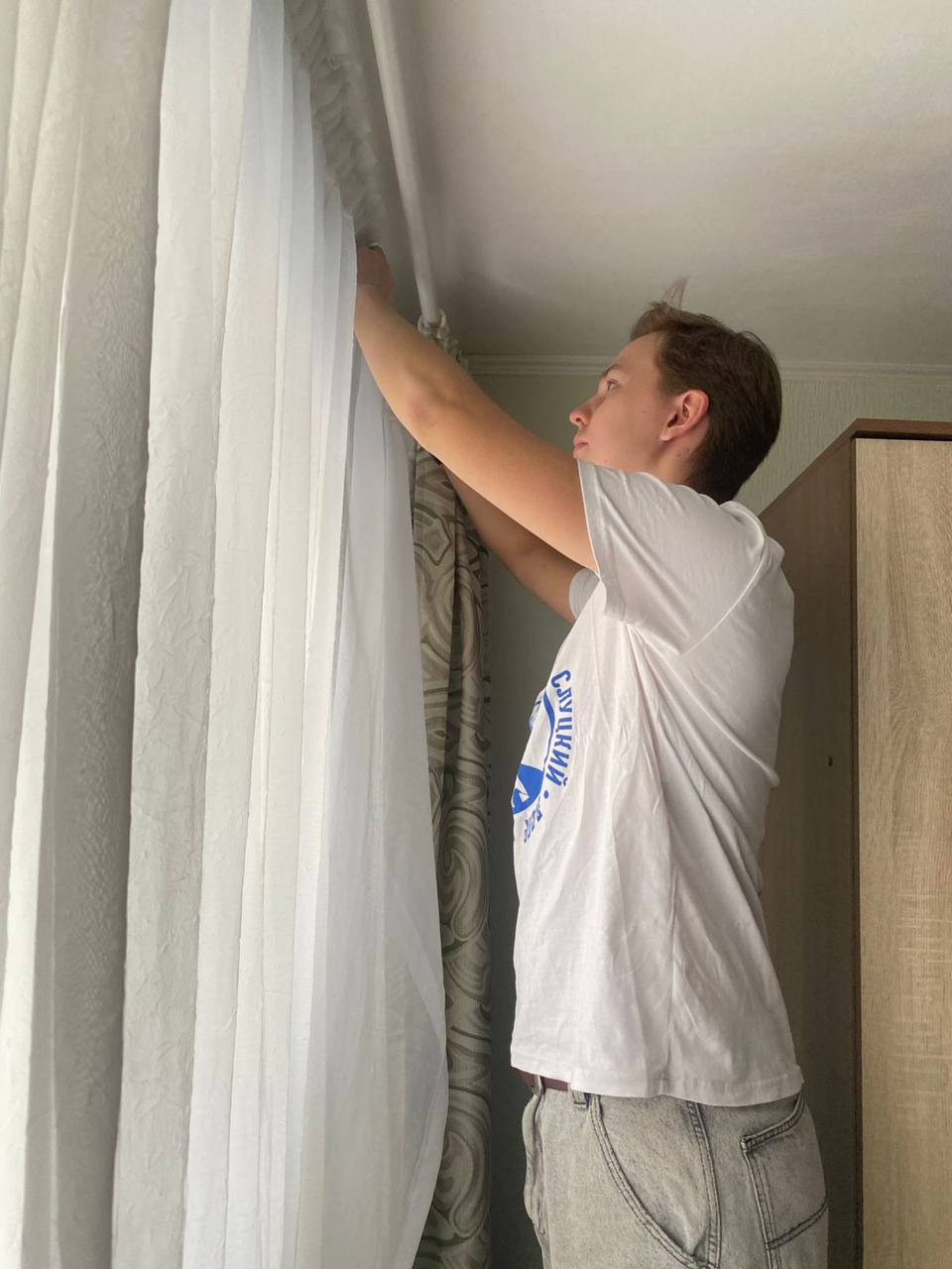 «Мы повесили шторы в доме, чтобы создать атмосферу тепла и комфорта. Это так важно для людей, особенно в пожилом возрасте», - поделился представитель ЛДПР Михаил Шевелев.