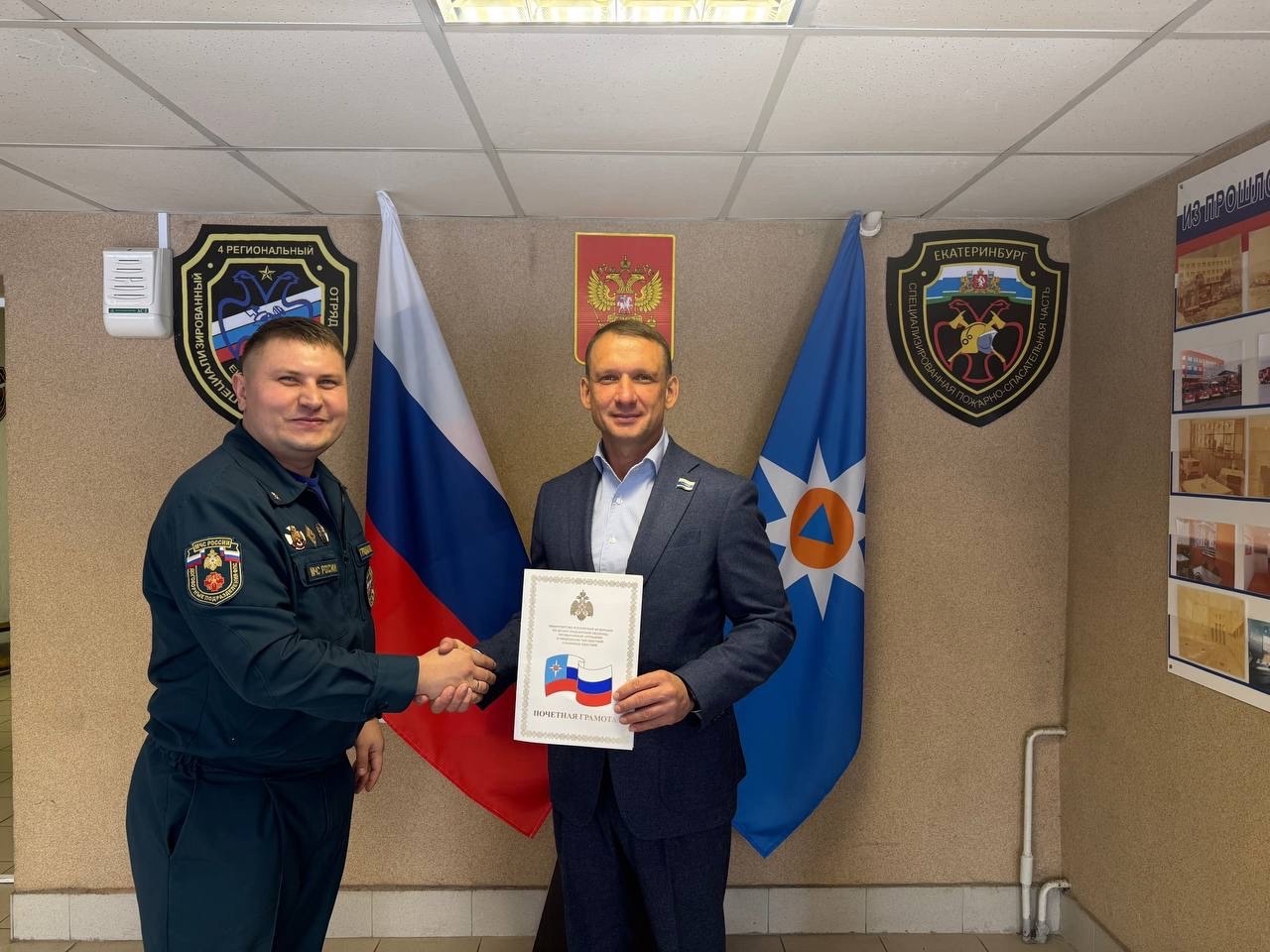 Координатор Свердловского регионального отделения ЛДПР Александр Каптюг с рабочим визитом посетил пожарно-спасательную часть ФПС ГПС Главного управления МЧС России по Свердловской области