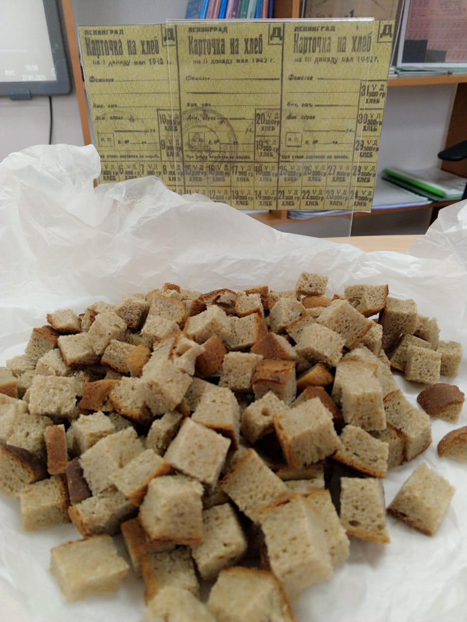 Школьники также узнали о том, что в годы блокады суточная норма хлеба для жителей Ленинграда составляла всего 125 граммов. Во время акции школьникам наглядно продемонстрировали как выглядели такие кусочки.