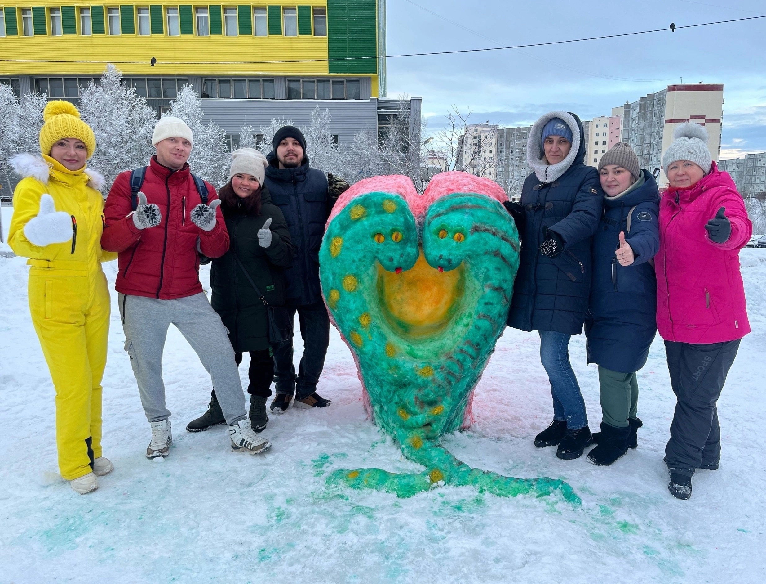 Координатор Скалистого местного отделения ЛДПР Юлия Ушакова вместе с командой Полярнинского комплексного центра соцобслуживания населения создали удивительную снежную фигуру под названием "Тепло семьи", посвященную Году Зеленой Деревянной Змеи. Эта работа символизирует единство и заботу, которые объединяют нас в холодное время года.