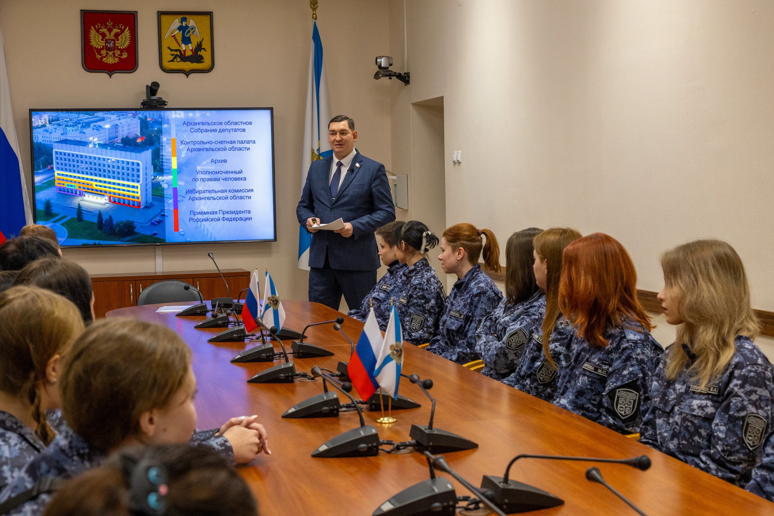 В Архангельском областном Собрании депутатов состоялся парламентский урок для студентов Архангельского многопрофильного колледжа кинологов. Встречу с молодежью провёл депутат от ЛДПР Владимир Сухарев. Встреча стала отличной возможностью для ребят задать волнующие их вопросы и поделиться своими проблемами