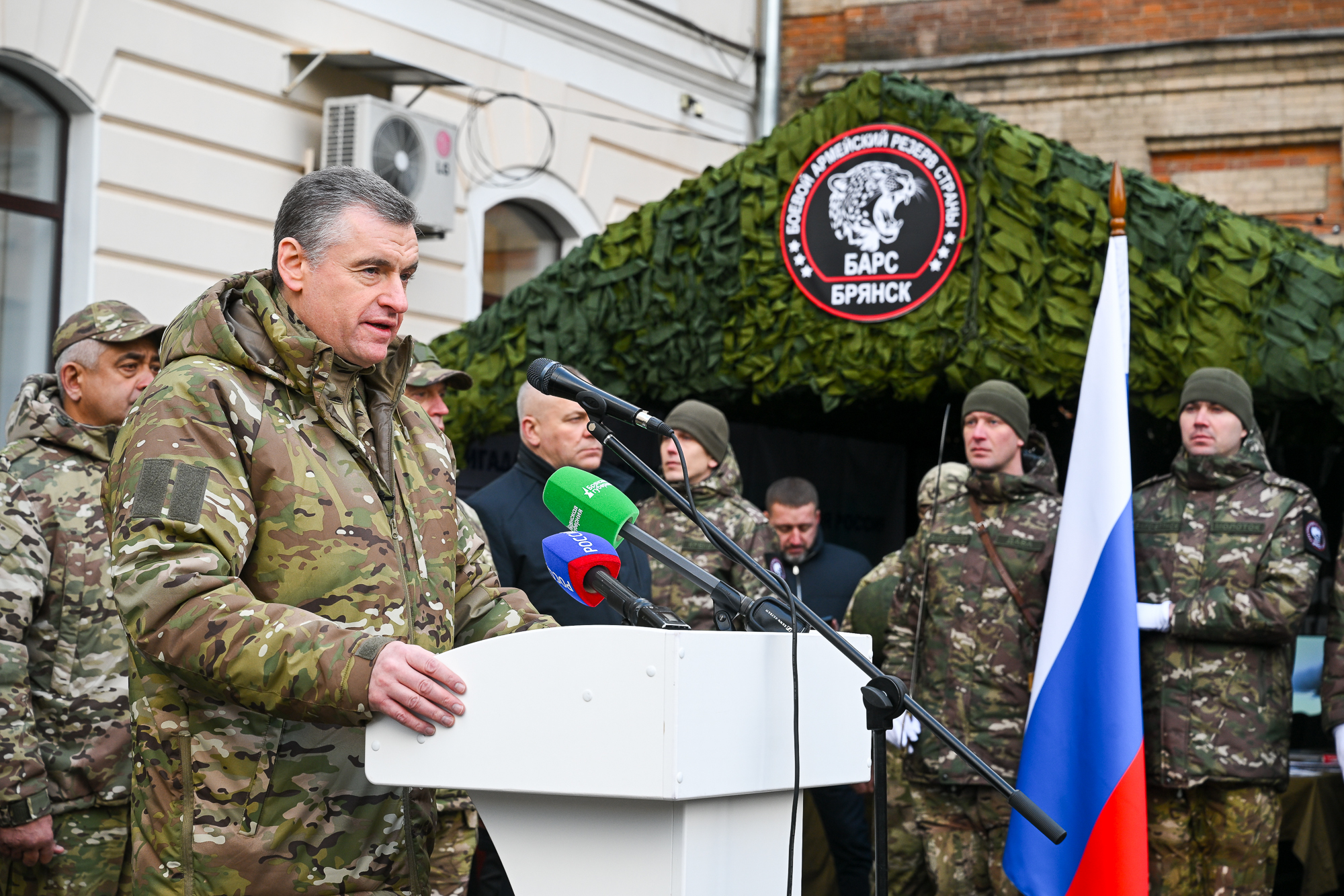 Хочу сказать слова искренней признательности Александру Васильевичу Богомазу – уникальному, эффективному губернатору и моему другу, который сделал всё возможное и невозможное по обеспечению боеготовности бригады «БАРС-Брянск». Вместе мы продолжим ежедневное решение этих важнейших задач. Желаю всем бойцам и офицерам бригады «БАРС-Брянск» крепости духа, здоровья и удачи. Всё это необходимо для выполнения целей, поставленных Президентом Российской Федерации. Уверен, мы все вместе, плечом к плечу, обеспечим надёжную поддержку для нашей скорейшей победы», – сказал Председатель ЛДПР Леонид Слуцкий.