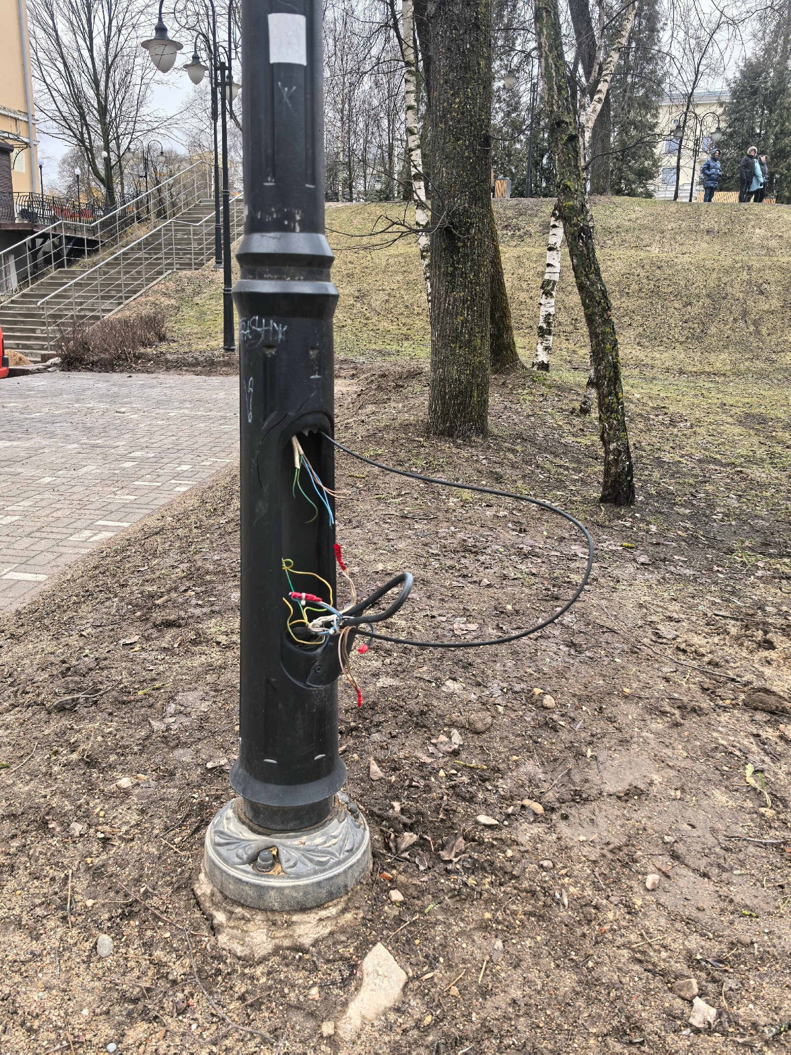 В подземном переходе на площади Победы в Смоленске с потолка либо сам упал светильник, либо, что скорее всего, помогли недалёкие умы и шаловливые руки. Соратники бесов расковыряли фонарный столб в отремонтированном парке Победы.