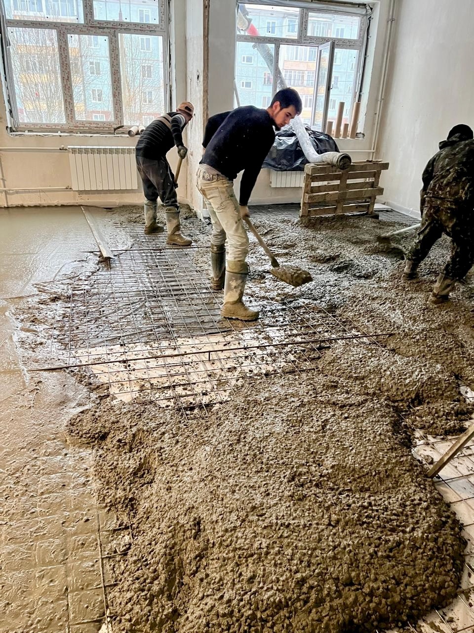 Кирилл Алескеров подчеркнул, что работы активно ведутся, но до завершения еще далеко: уже установлен теплоузел, проходит процесс настройки теплового оборудования. На этажах уже заливают бетонную стяжку, а также ведут подготовительные работы на кровле.