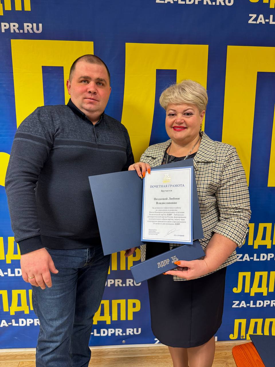 В рамках юбилейного приёма в честь 35-летия ЛДПР Андрей Кузнецов вручил партийные билеты новым единомышленникам. Наградил почётной грамотой от лица Председателя ЛДПР Леонида Слуцкого координатора Новоуренгойского местного отделения ЛДПР Любовь Поздееву, отметив её активное участие в жизни партии и вклад в общее дело.