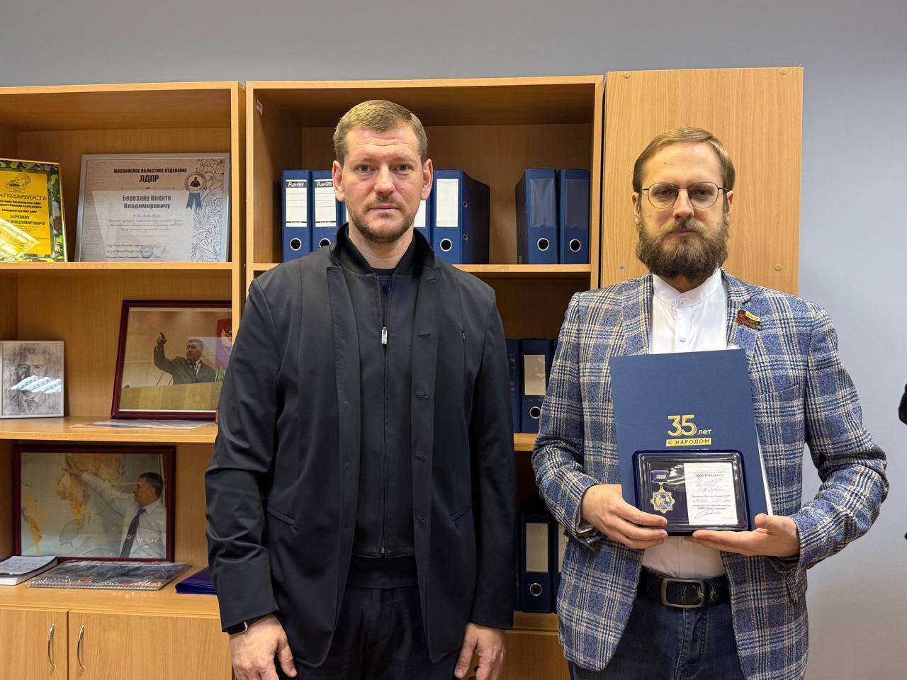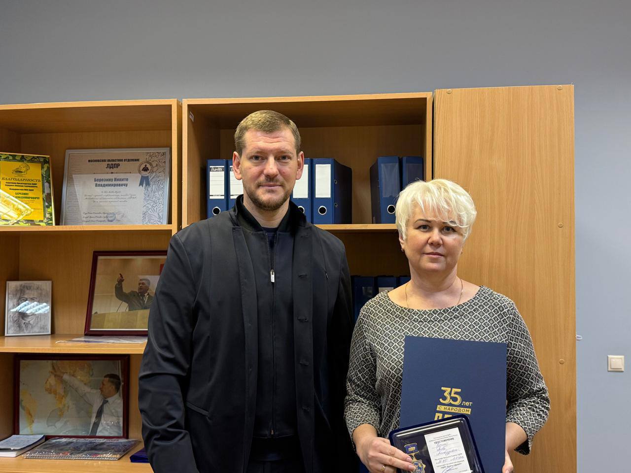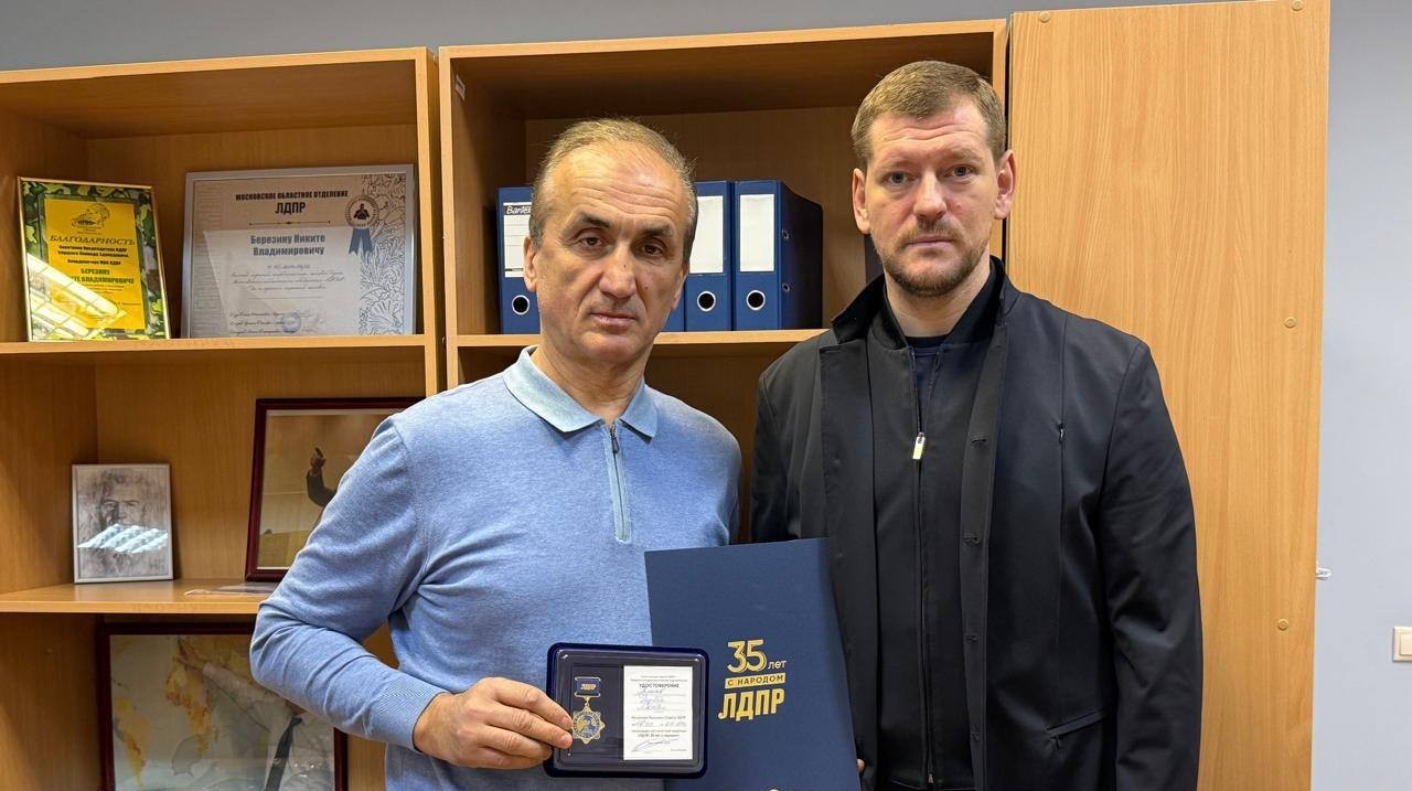 Член Высшего совета ЛДПР, региональный координатор Московского областного отделения ЛДПР Никита Березин вручил памятные медали «ЛДПР: 35 лет с народом»