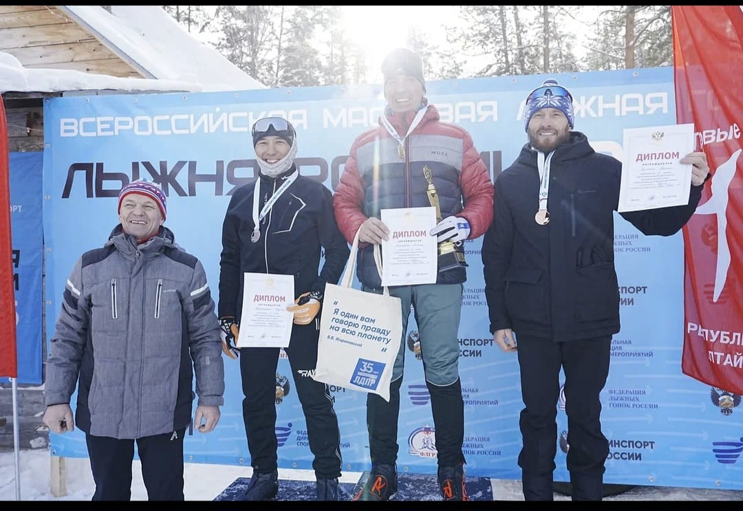 В Турочакском районе на Всероссийской массовой лыжной гонке «Лыжня России — 2025» активисты ЛДПР вручили победителям и призерам памятные призы