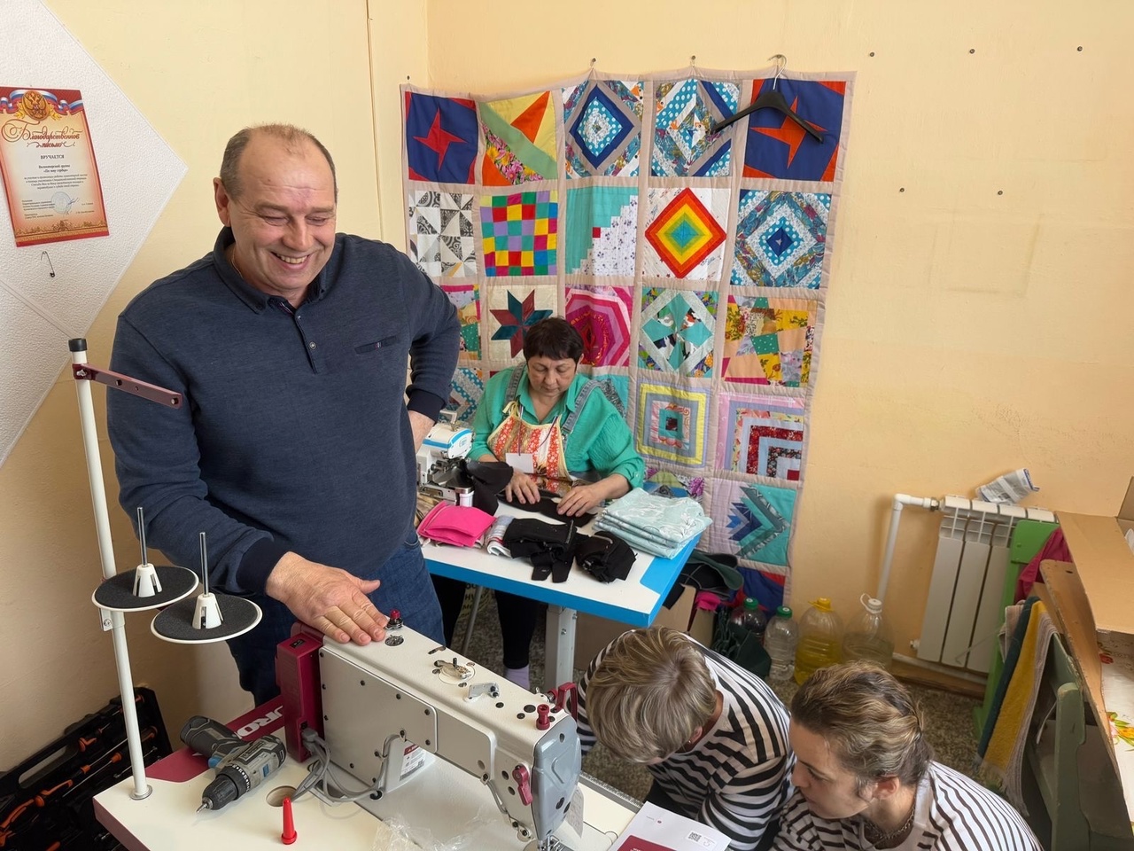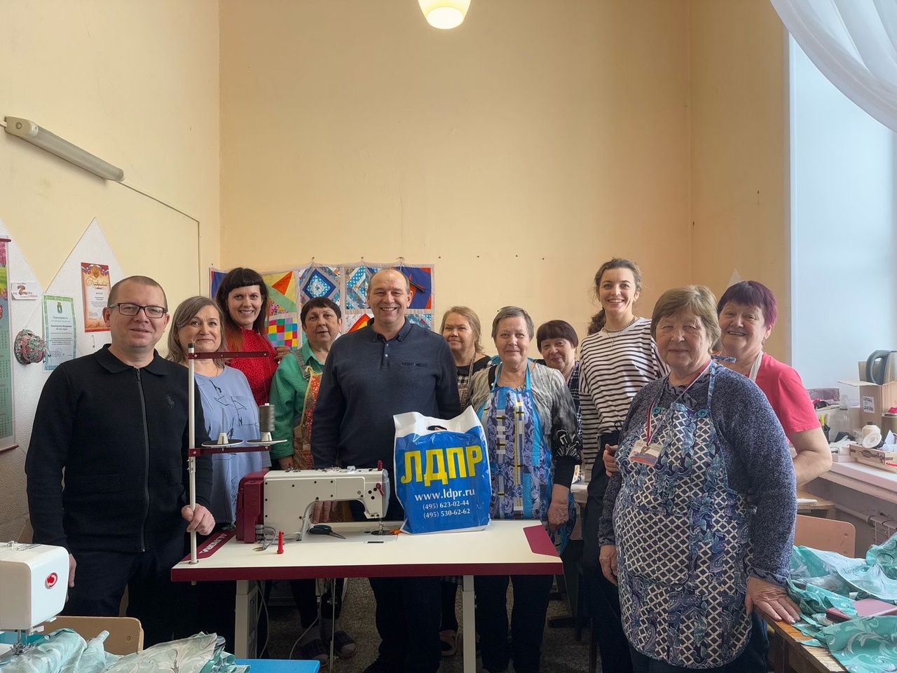 Депутаты ЛДПР внимательно ознакомились с работой волонтеров, оценили объемы производимой продукции и подарили центру швейную машинку.