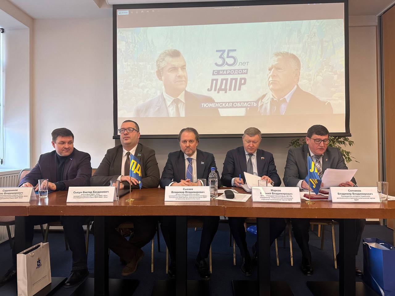 Прошла отчетно-выборная конференция Тюменского регионального отделения ЛДПР, в которой приняли участие Уполномоченный представитель Председателя ЛДПР в УРФО Владимир Сысоев, координатор Тюменского регионального отделения партии Евгений Марков, руководитель депутатской фракции ЛДПР в Думе ХМАО-Югра Виктор Сысун, Председатель палаты депутатов ЛДПР Тюменской области Денис Садовников, руководитель аппарата Тюменского регионального отделения ЛДПР Владимир Сотников, депутаты ЛДПР и делегаты