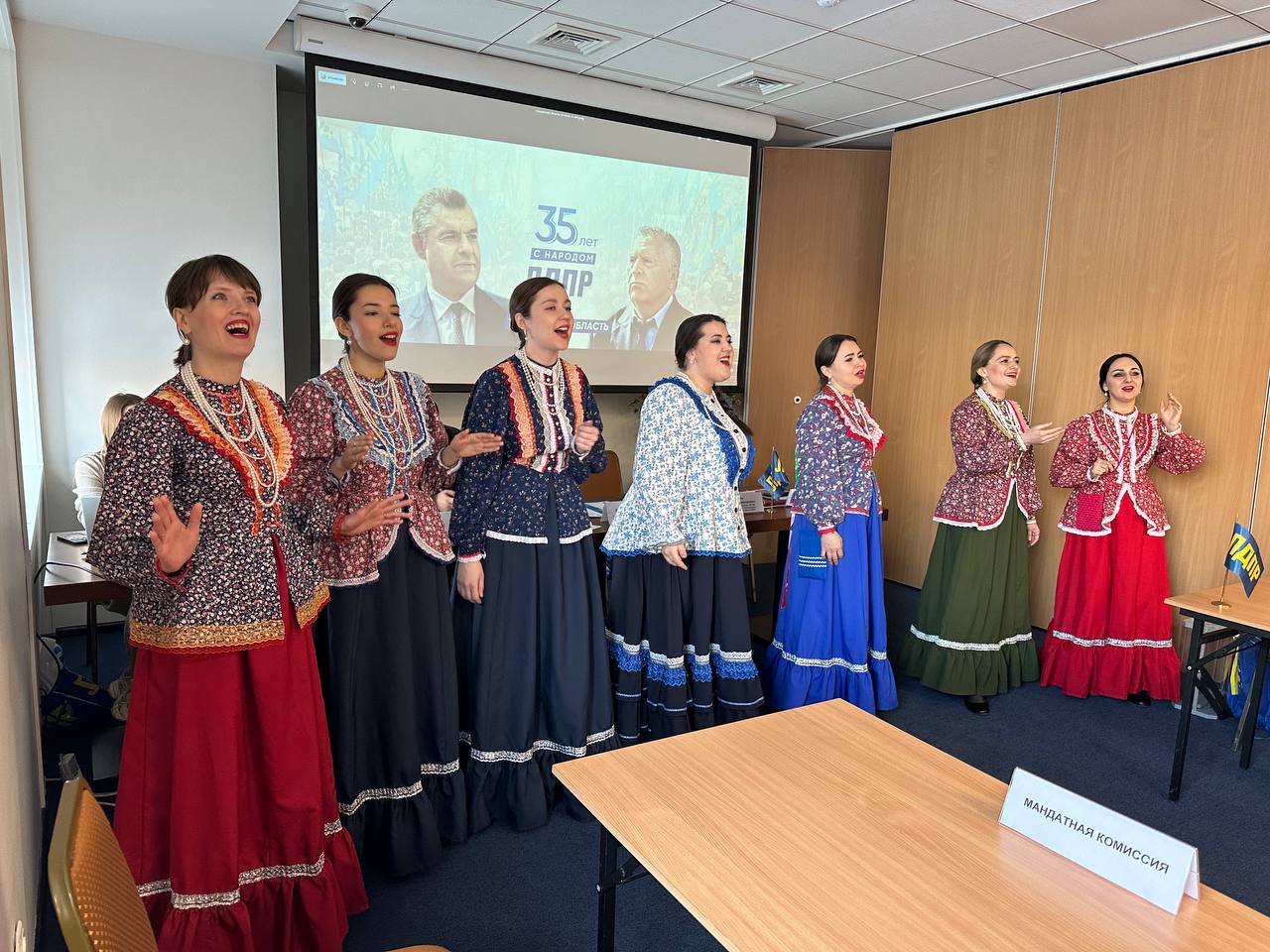Конференцию ЛДПР в Тюмени открыло выступление артистов коллектива «Златоцвет» под руководством Дарьи Чехомовой.