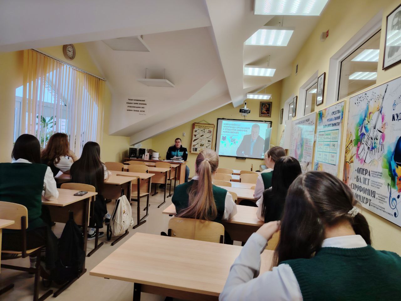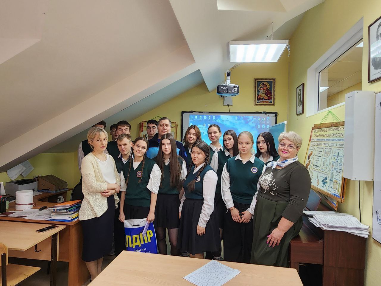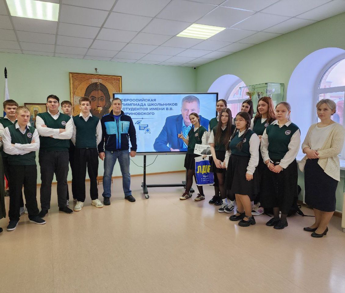 Депутат Думы города Новый Уренгой Артём Пикалов и координатор Новоуренгойского местного отделения ЛДПР Любовь Поздеева встретились с учениками старших классов Новоуренгойской православной гимназии