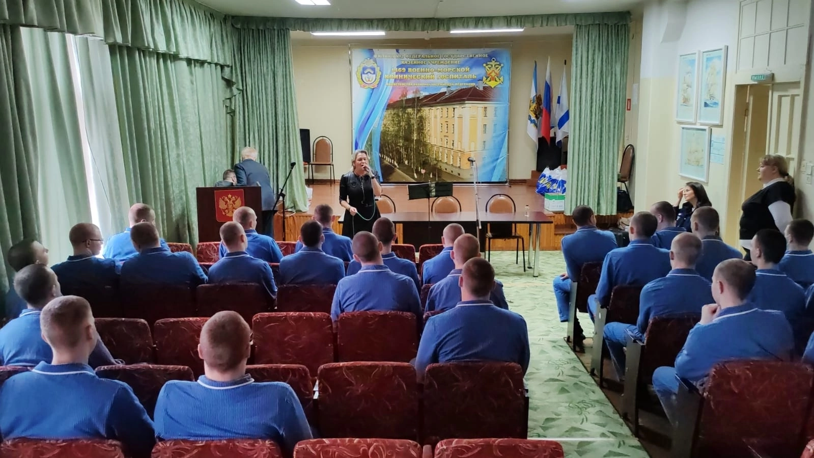 Для пациентов госпиталя был организован небольшой концерт с песнями и авторскими стихами в исполнении депутата фракции ЛДПР Городского Совета депутатов городского округа “Город Новодвинск” Татьяны Верюжской и Натальи Гулич, за микшерным пультом работал координатор Новодвинского отделения ЛДПР Эдуард Киевский.