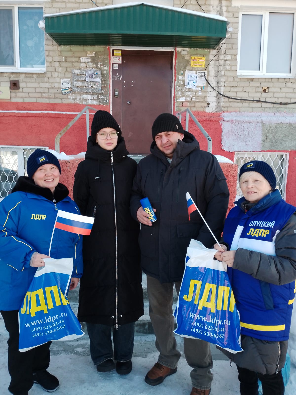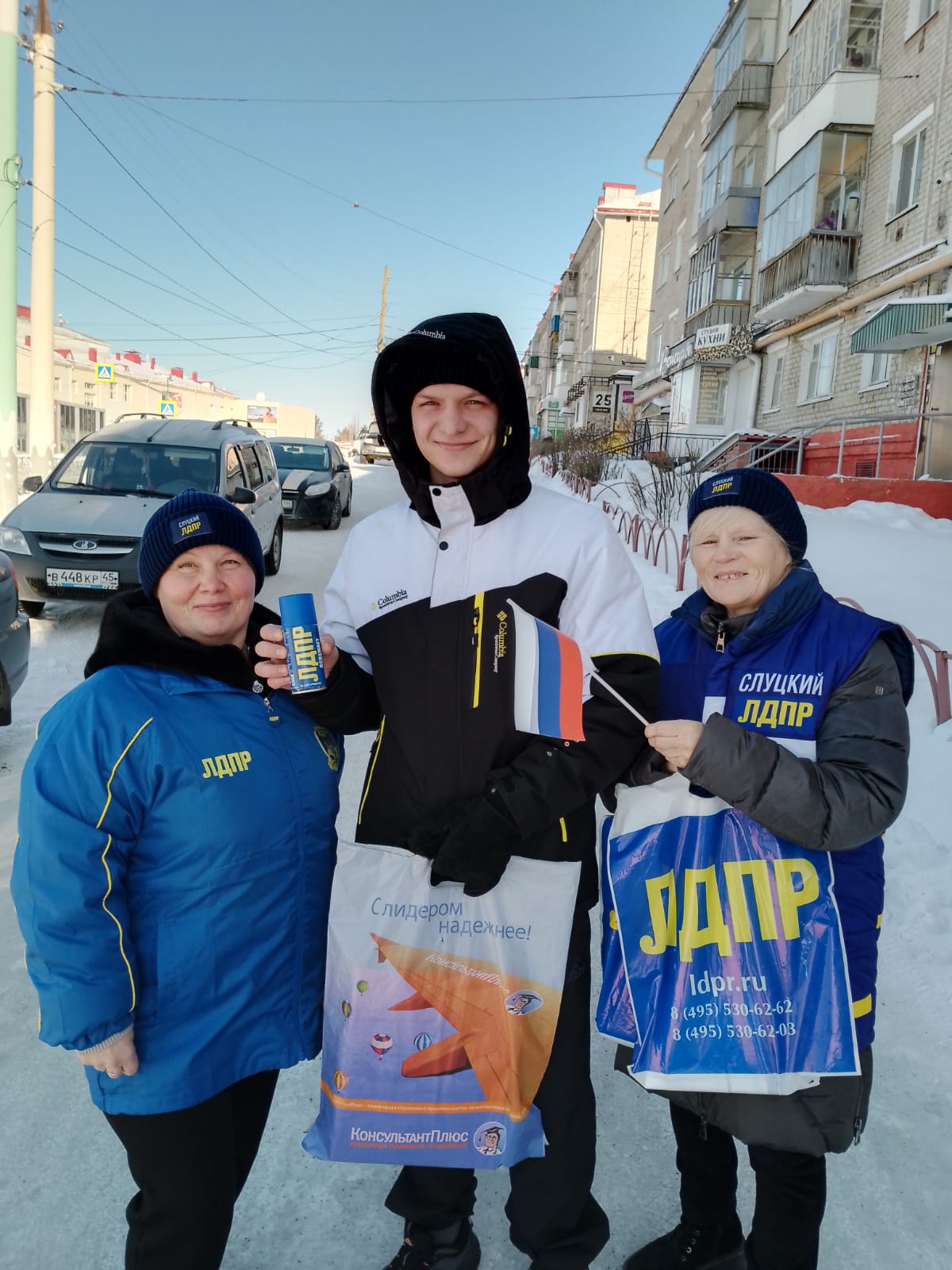 Активисты Качканарского местного отделения ЛДПР организовали поздравления с Днём защитника Отечества на улицах города, вручая мужчинам памятные подарки и символику партии