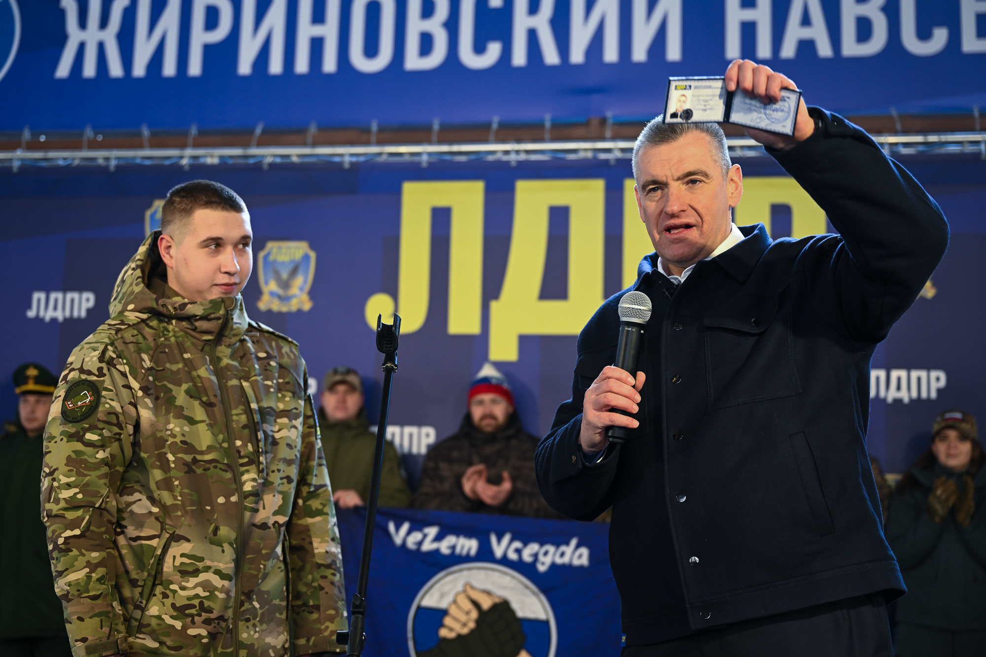 Также во время митинга-концерта Председатель ЛДПР вручил партийный билет Даниилу Мартынову – участнику СВО, принявшему решение вступить в партию вслед за своим отцом.
