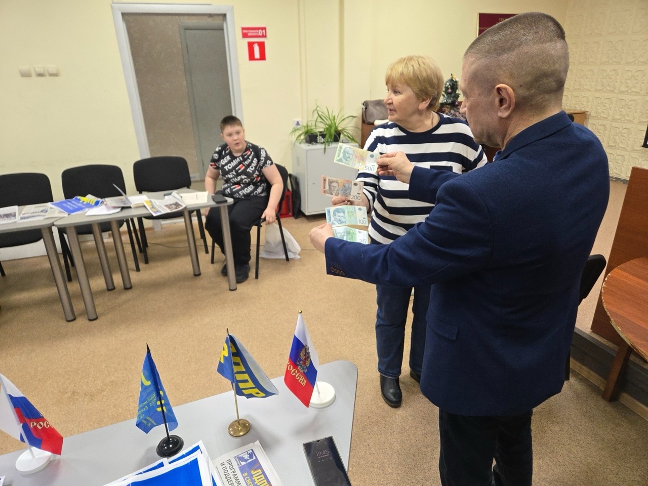 На заседании присутствовали представители Лесного местного отделения ЛДПР. Они проявили интерес к теме и раздали присутствующим сувениры с символикой партии.