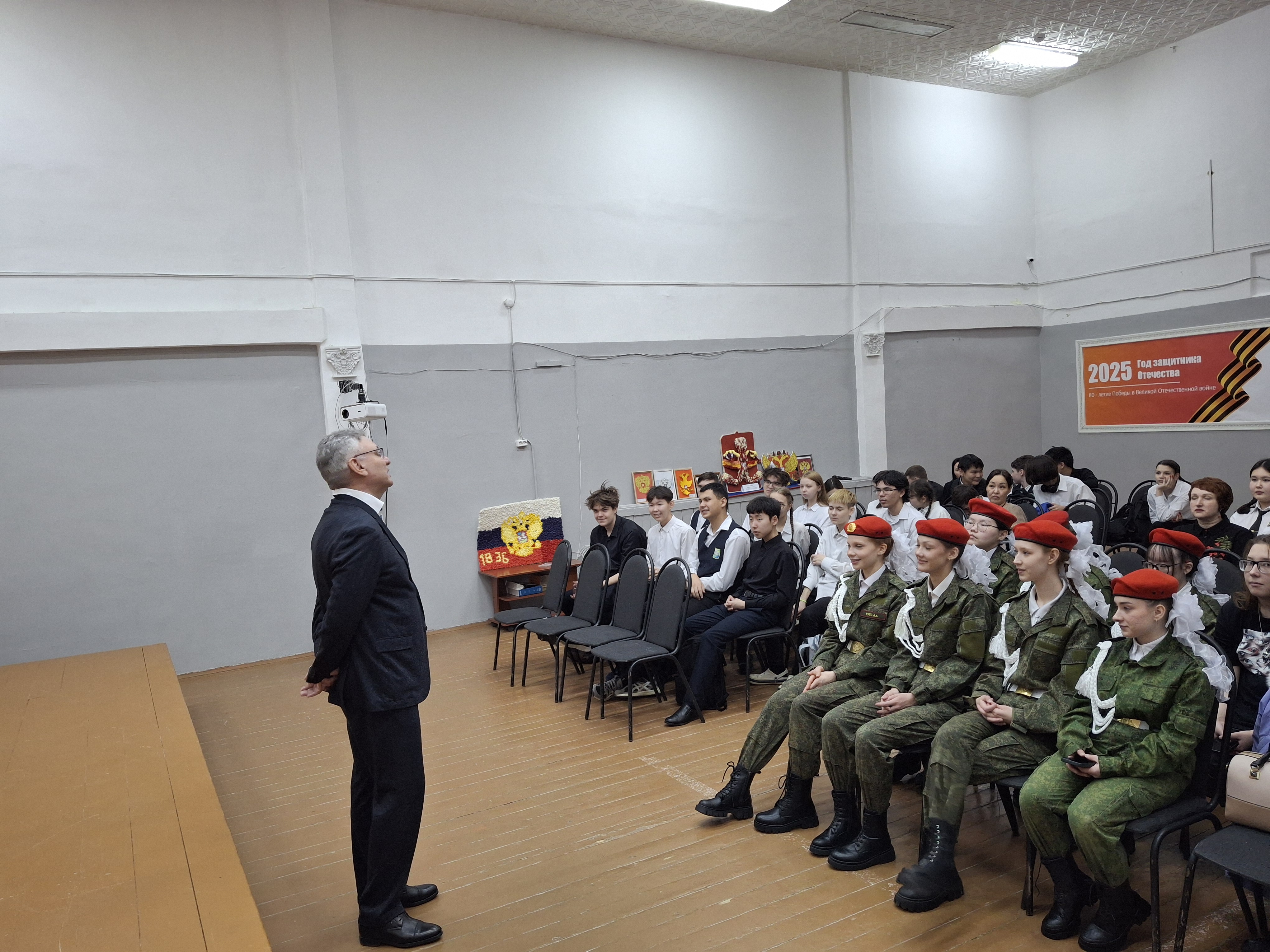 Особое внимание было уделено патриотическому воспитанию. Депутат подчеркнул необходимость знать и уважать историю своей страны, гордиться достижениями предков и быть готовыми к защите Родины. Он призвал школьников активно участвовать в жизни школы и города, проявлять гражданскую позицию и не оставаться равнодушными к проблемам общества.