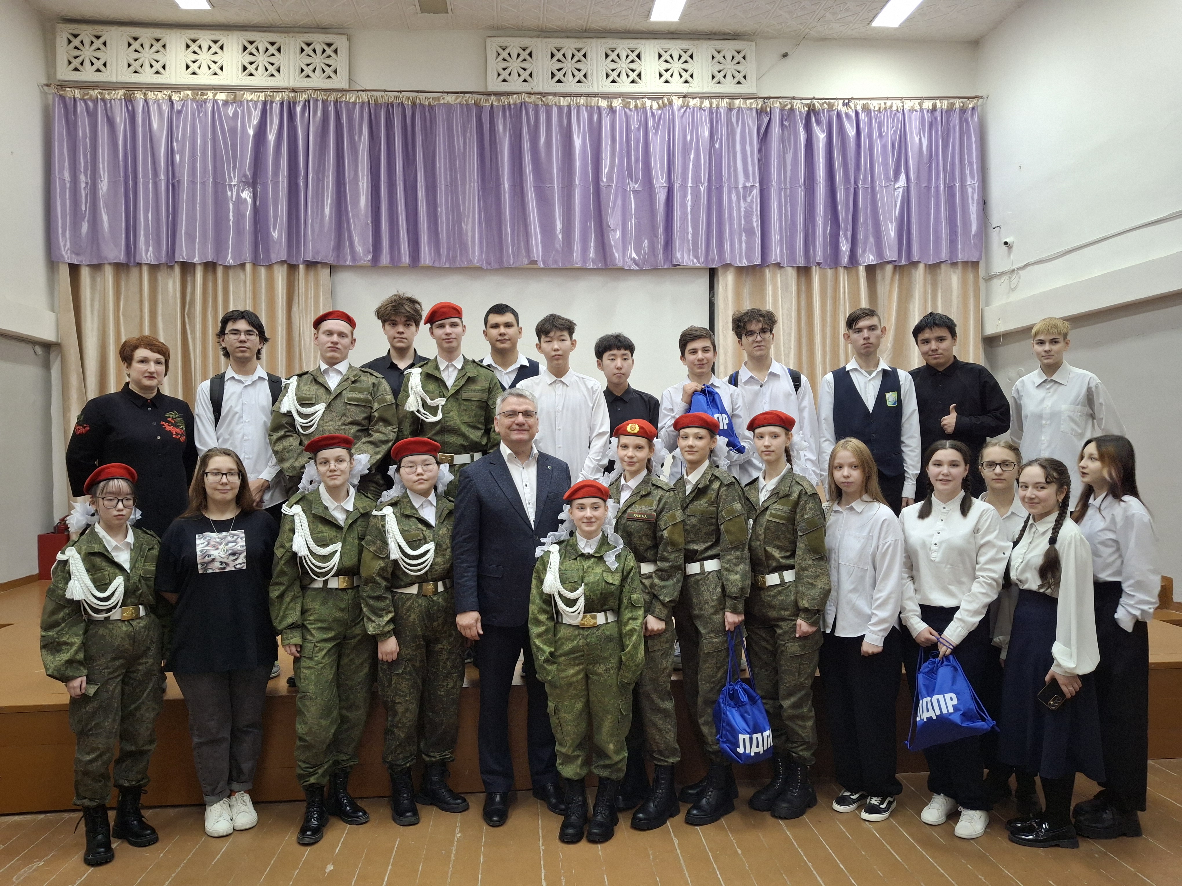 Депутат Якутии, лидер Якутского РО ЛДПР Гаврил Парахин провел Урок мужества в СОШ №2 имени Скрябина ГО "Жатай". Он напомнил слова Жириновского о текущих событиях, подчеркнув участие Якутян в специальной военной операции и готовность страны к защите и Победе; отметил важность единства и стремления к процветанию России.