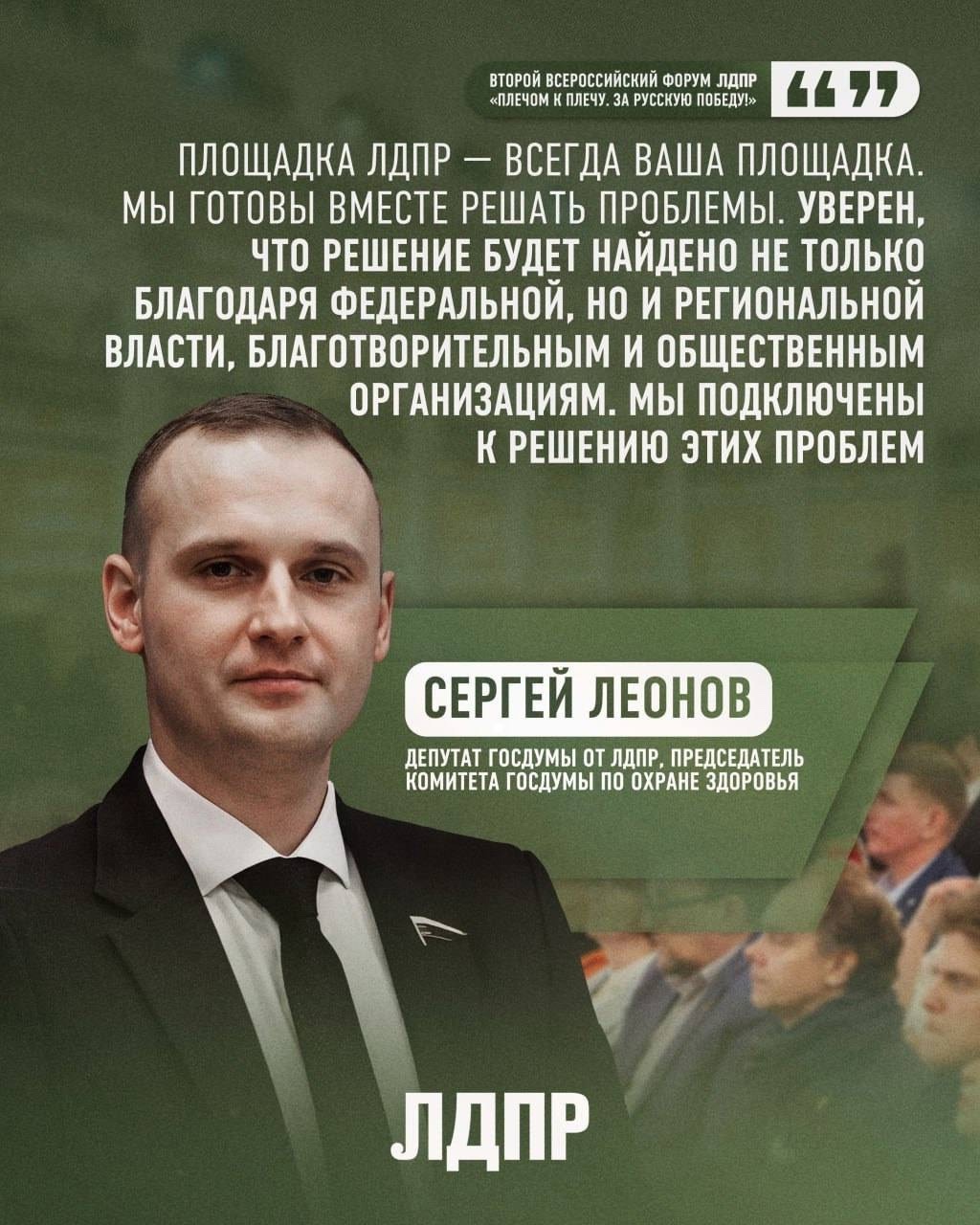 Депутат ЛДПР, председатель Комитета Госдумы по охране здоровья Сергей Леонов на форуме провел дискуссионную площадку «Медицинская помощь и реабилитация участников специальной военной операции».