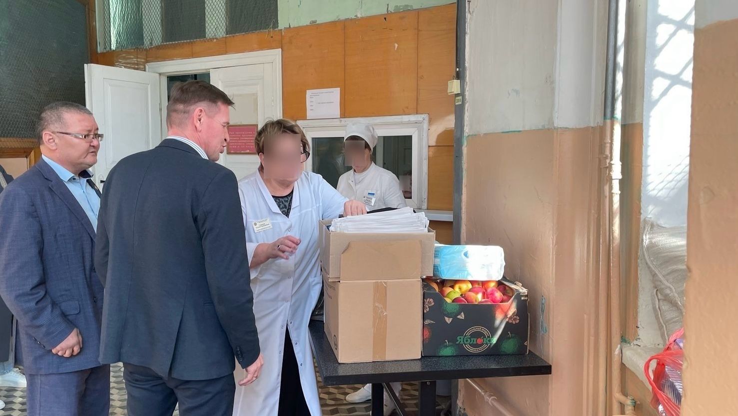 Тимофей Щербаков вместе с другими партийцами привез в госпиталь мыльно-бритвенные принадлежности, гигиенические средства, большие фруктовые корзины и подарки с партийной символикой для всех военнослужащих, находящихся в медучреждении.