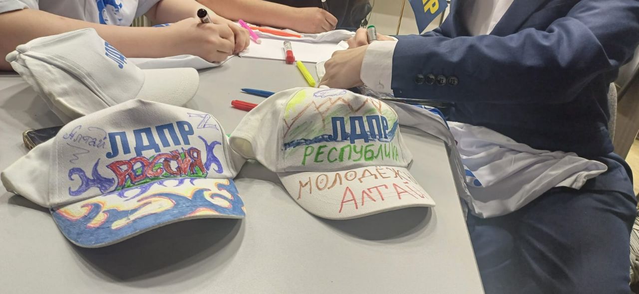 Участники мероприятия решили кастомизировать мерч ЛДПР. Они вручную разрисовали футболки, бейсболки, и другую атрибутику, добавив в них индивидуальные детали. По окончании слёта, условные команды представили свои работы.