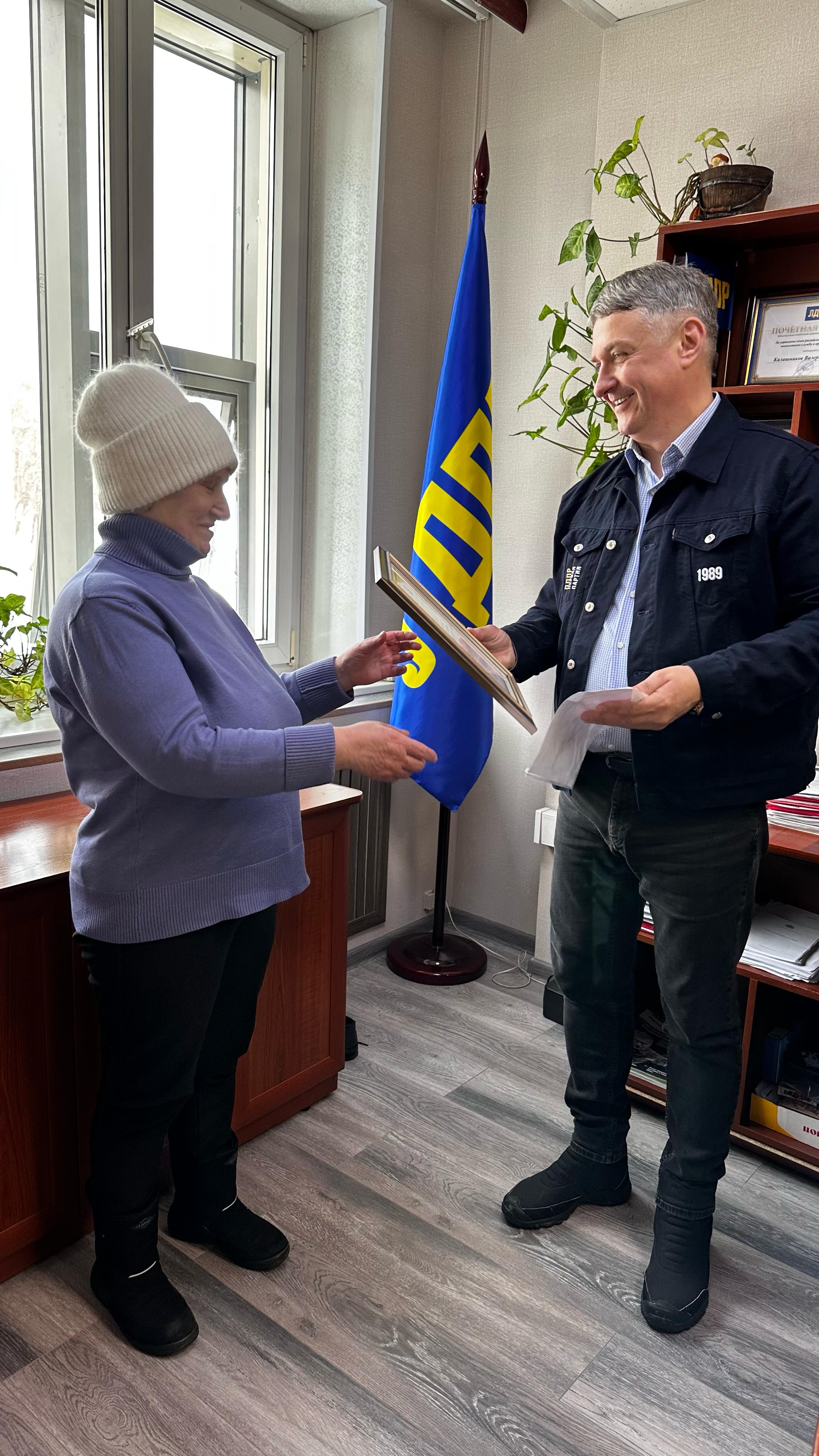 В день работника культуры руководитель фракции ЛДПР в Заксобрании Камчатского края Валерий Калашников вручил Грамоту Заксобрания работнице ДК «Апрель» с 45-летним стажем