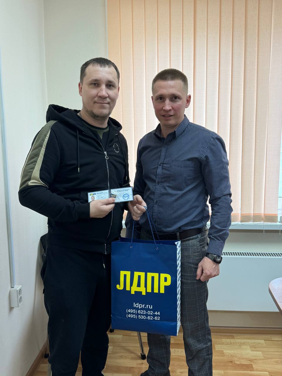 В рядах Няганского отделения ЛДПР пополнение: Александр Архипов вручил партбилет участнику СВО