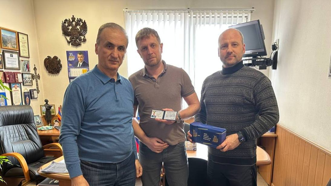 Депутат Совета депутатов от ЛДПР в городском округе Клин Вардан Туманов провёл торжественную церемонию вручения партийных билетов новым членам ЛДПР