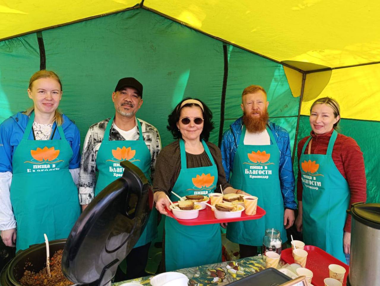 Уже на протяжении четырех лет каждое воскресенье волонтеры клуба бесплатно раздают горячую еду прихожанам Храма Рождества Христова в городе Краснодаре