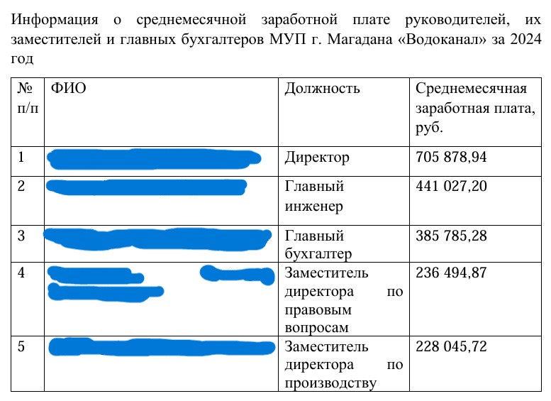 Почему в условиях высоких налогов и тарифов руководители муниципального предприятия получают такие доходы? Разве эти деньги не должны идти на модернизацию сетей, улучшение качества воды или снижение тарифов?