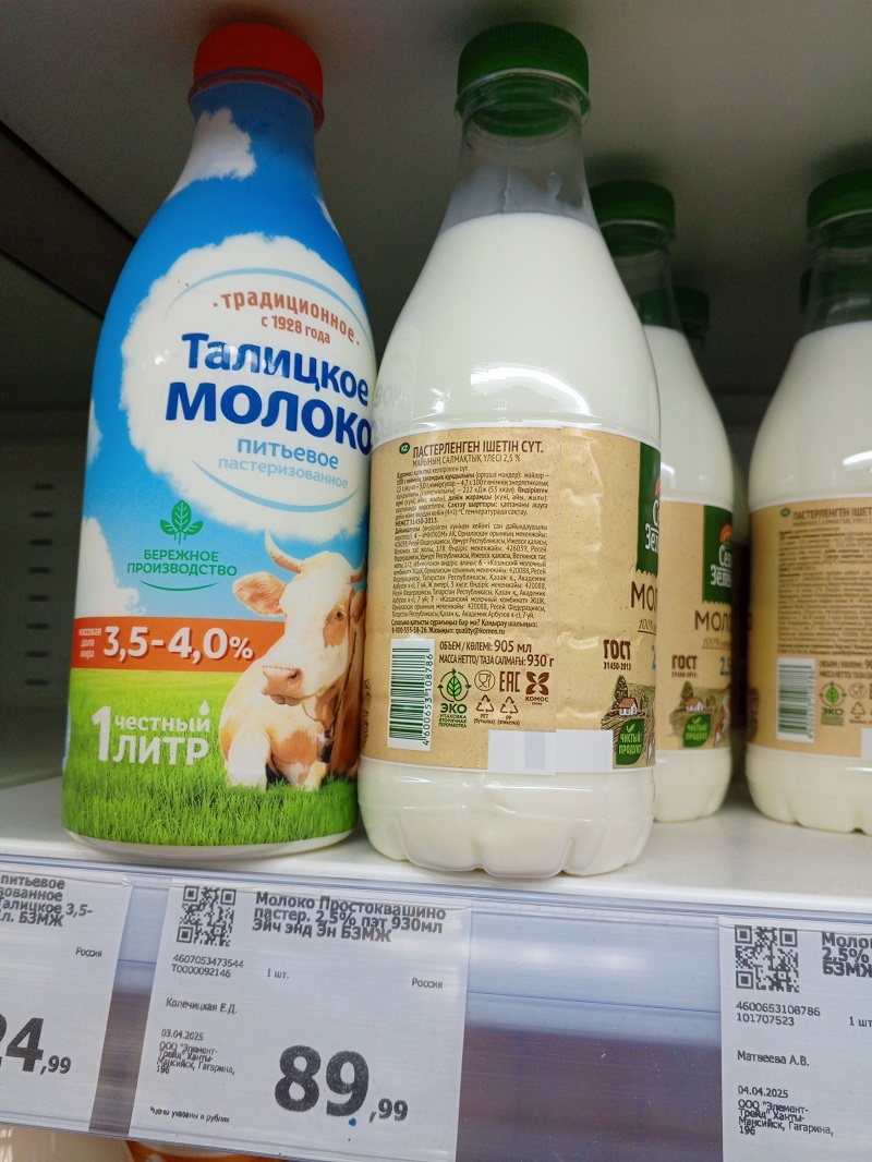 «Производители все чаще прибегают к хитростям, уменьшая объем упаковок, что вводит покупателей в заблуждение. Например, человек покупает бутылку молока, думая, что это литр, а на самом деле некоторые производители уже не литр молока продают в упаковке, а 0,9 или 0,93 мл, аналогичная ситуация с соками», - рассказал партиец.