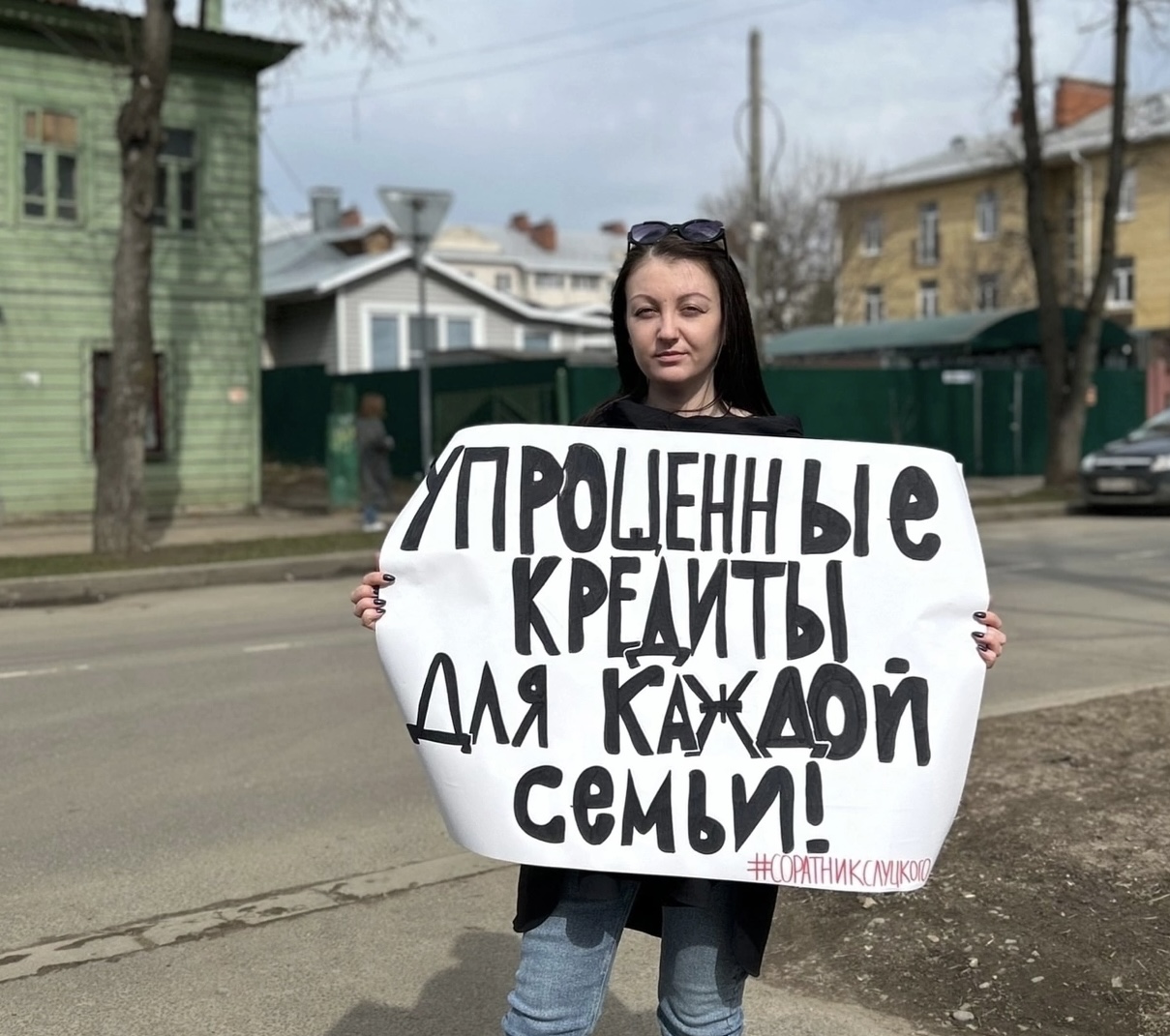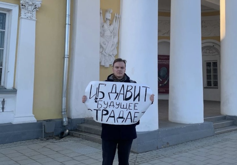 Активист Никита Скрябин вышел на пикет с плакатом «ЦБ давит, будущее страдает!». Бизнес сегодня испытывает чрезмерное финансовое давление, а для многих людей покупка жилья становится нереальной целью, заявил он.