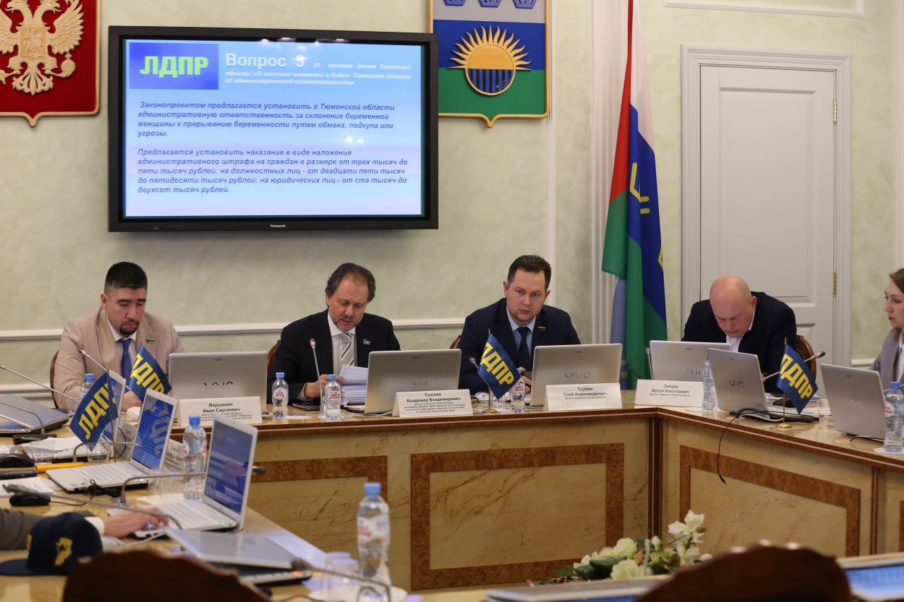 Депутат фракции ЛДПР в Тюменской областной Думе Глеб Трубин ранее 2 раза вносил законопроект «О запрете склонения к искусственному прерыванию беременности». Оба раза были получены отрицательные заключения. Вносимым от фракции законопроектом предлагается установить в Тюменской области административную ответственность за склонение беременной женщины к прерыванию беременности путем обмана, подкупа или угрозы. Принятие законопроекта будет являться дополнительным механизмом защиты материнства в Тюменской области.