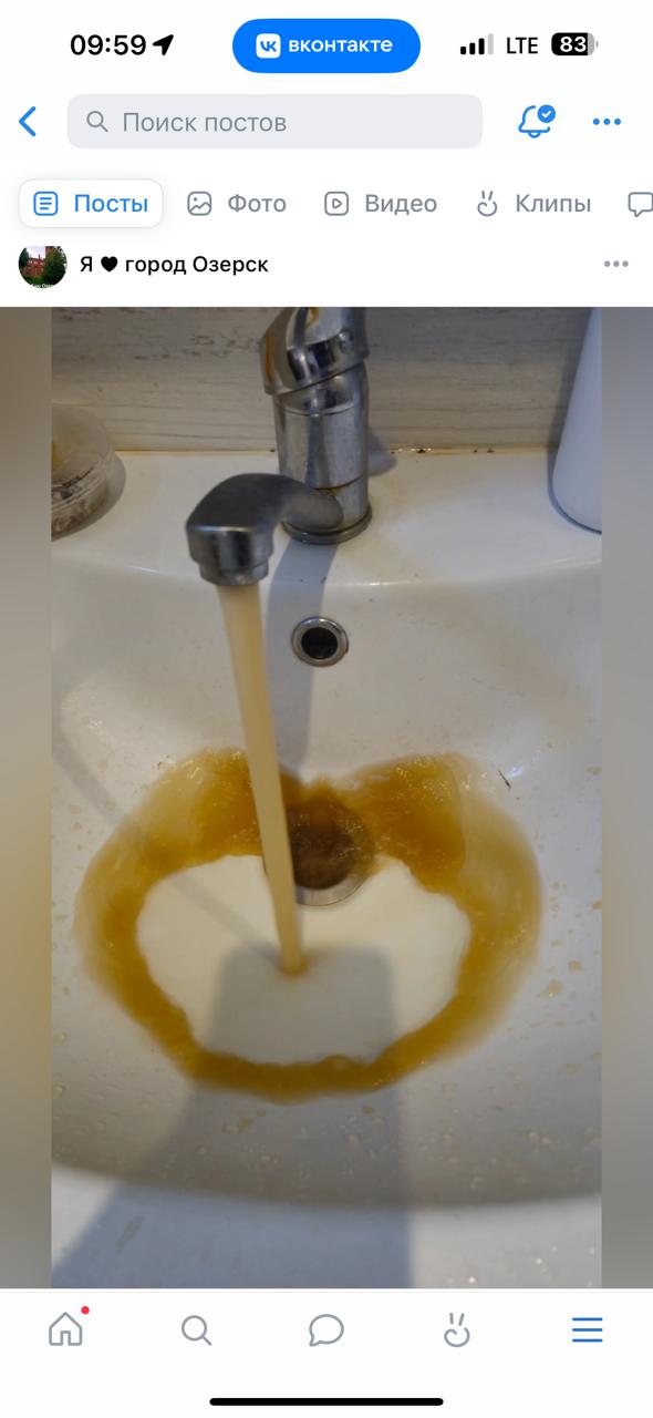В Озерске жители столкнулись с серьезной проблемой — вода из кранов имеет отвратительное качество, течет ржавая. Люди неоднократно обращались в различные инстанции с просьбой решить эту проблему, но, к сожалению, безрезультатно.