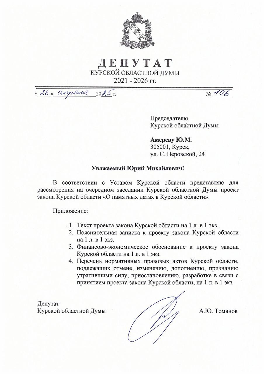 Слуцкий: 26 апреля должно стать памятной датой Курской области