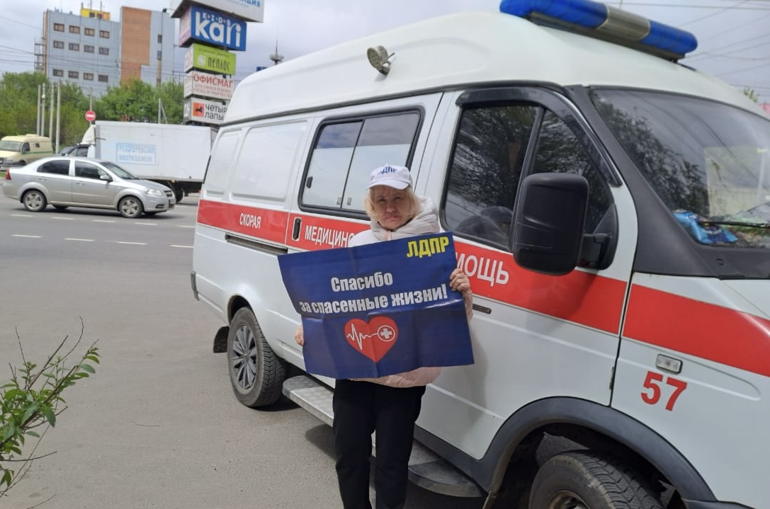 Координатор Заводского местного отделения ЛДПР Марина Николаева провела одиночный пикет. Цель пикета - поблагодарить и поздравить работников скорой медицинской помощи с профессиональным праздником, а также вручить памятные подарки.