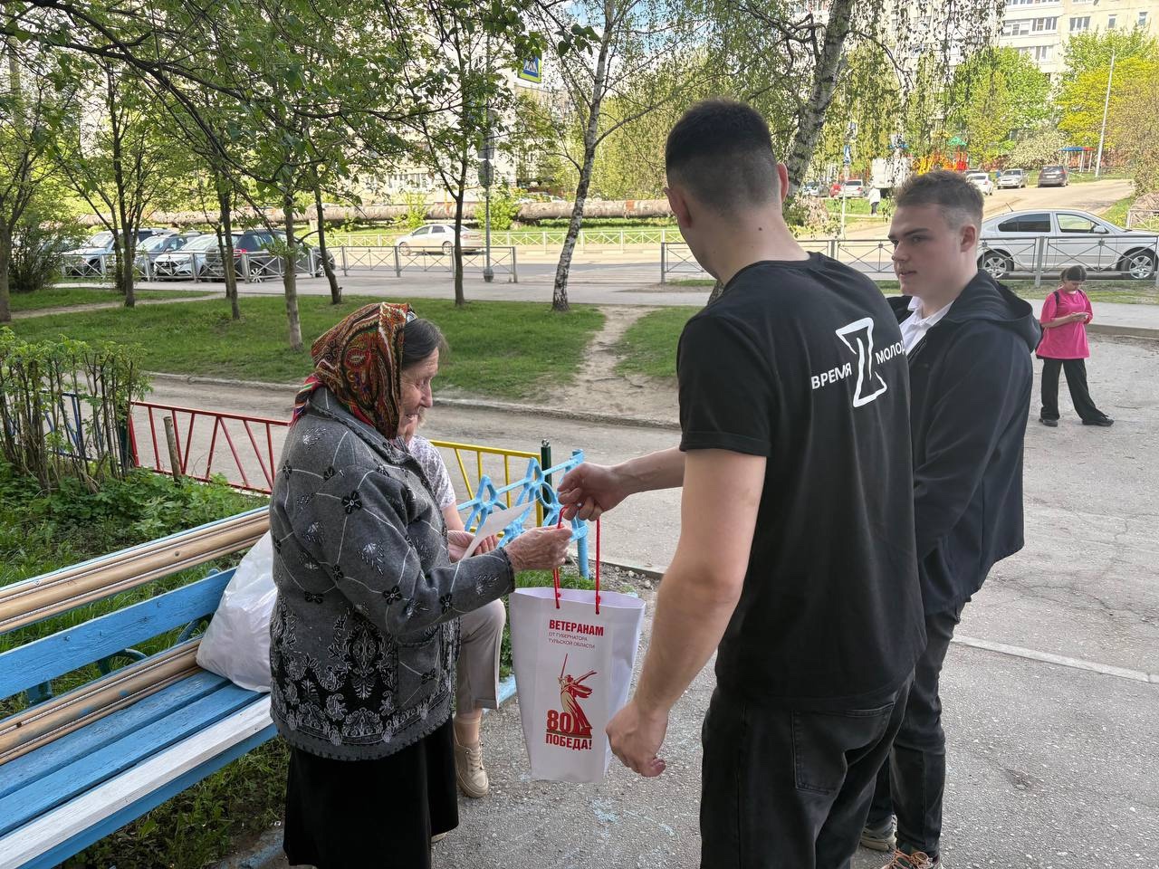 По поручению губернатора региона Дмитрия Миляева молодежные активисты вручили подарки и поздравили ветеранов, узников фашистских лагерей и тружеников тыла с наступающим 9 Мая