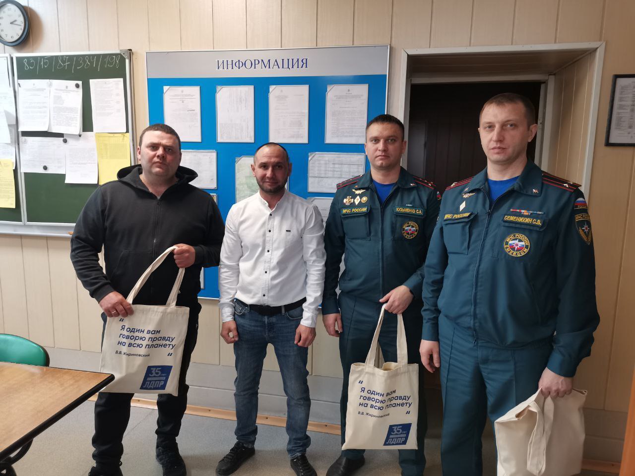 Поздравили сотрудников 1 пожарно - спасательного отряда и 41 пожарно - спасательной части. Вручили сувениры от ЛДПР, поблагодарили пожарных за их мужество, стрессоустойчивость, самоотверженность и готовность в любой момент прийти на помощь людям.