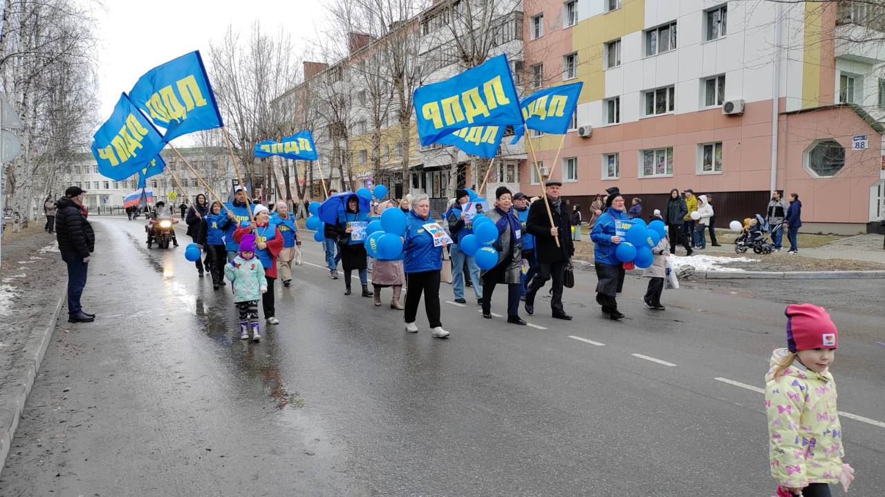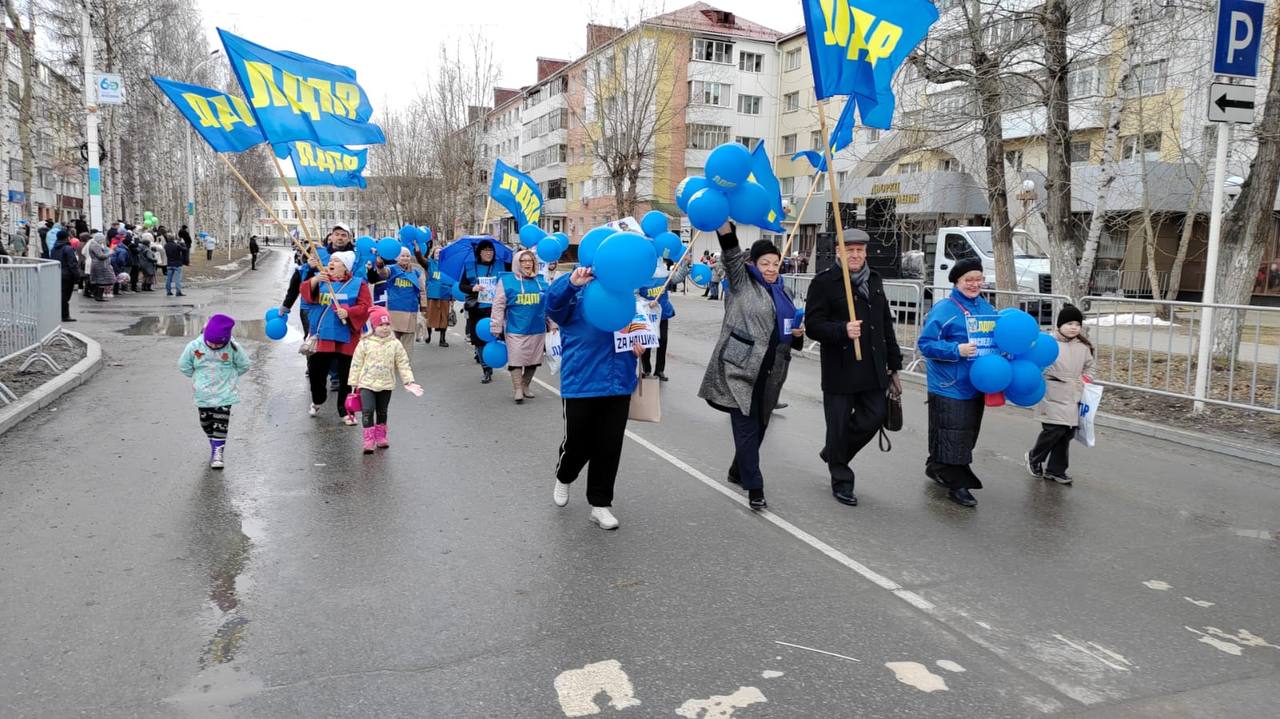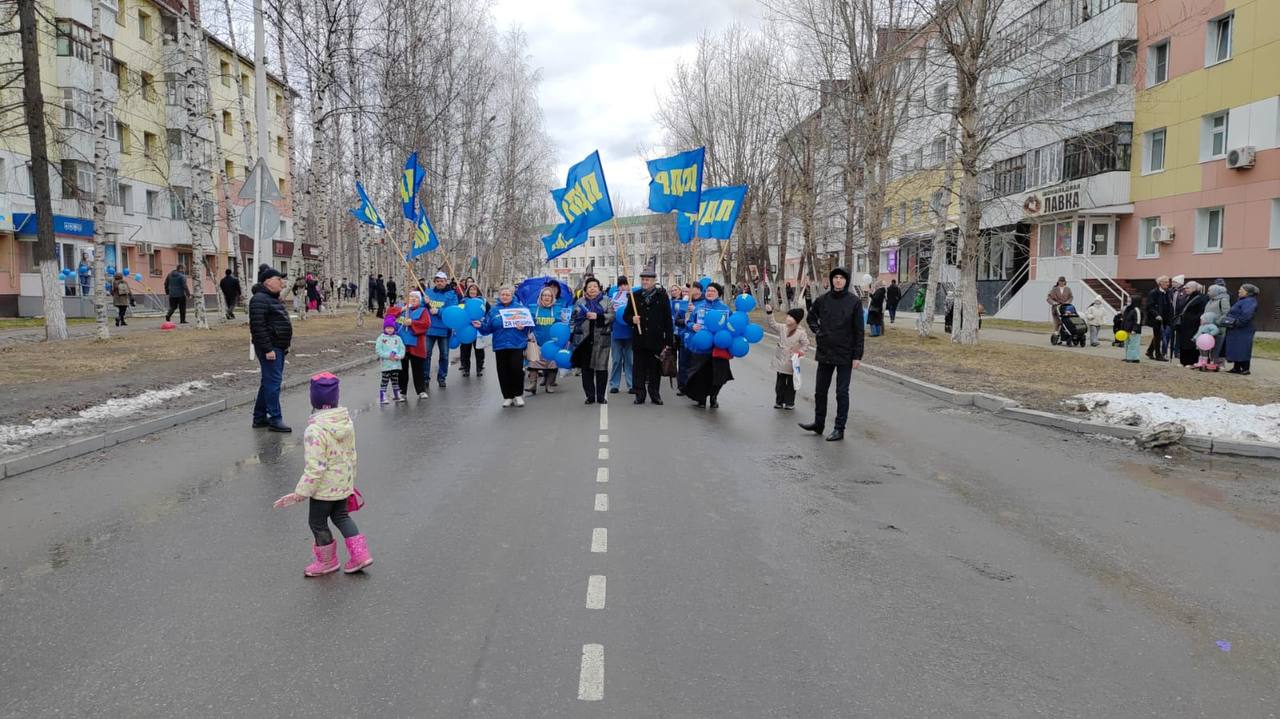 В Урае партийцы с семьями встретили Первомай на городском шествии