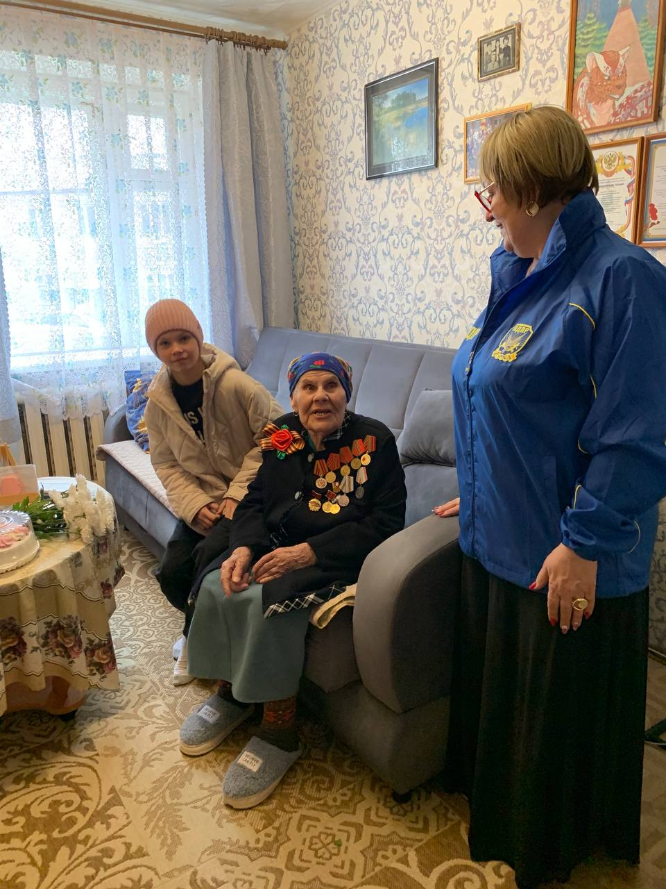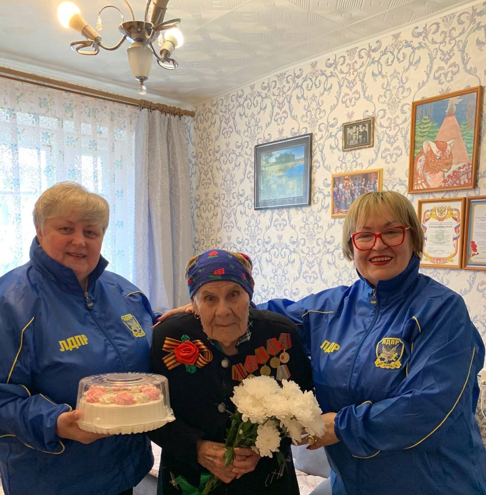Накануне 80-летия Победы в Великой Отечественной войне представители ЛДПР вручили Анне Иосифовне цветы и праздничный торт, поблагодарив её за трудовой подвиг и пожелав здоровья, благополучия и долгих лет жизни.
