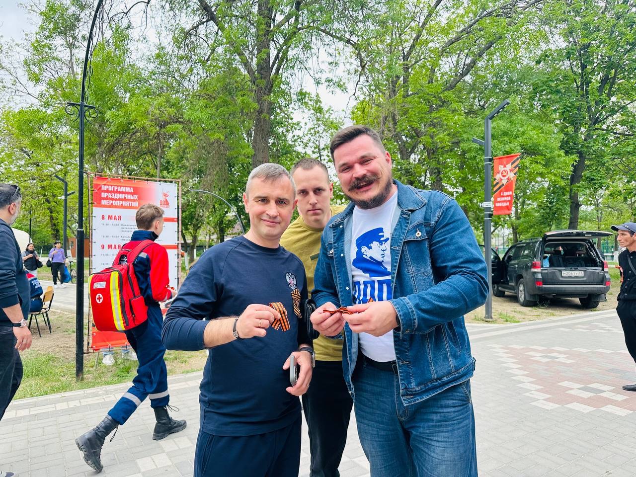 Кроме того, всем жителям и гостям города были вручены Георгиевские ленточки — символы памяти о грядущем празднике — Дне Победы 9 мая.
