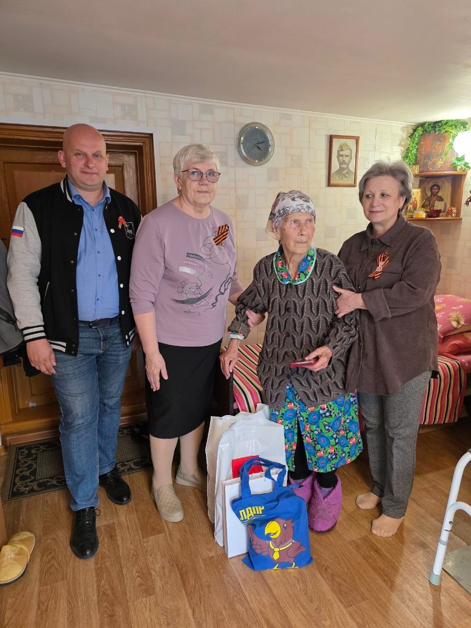Координатор Городецкого отделения ЛДПР Илья Соболев навестил тружениц тыла. Представитель партии передал женщинам продуктовые наборы, а также сувениры от партии.