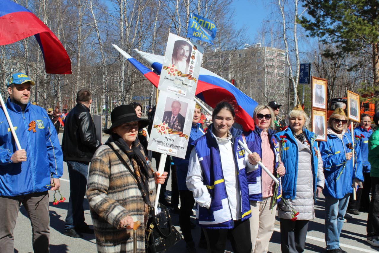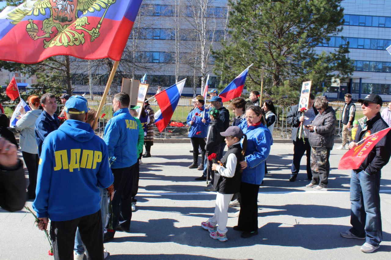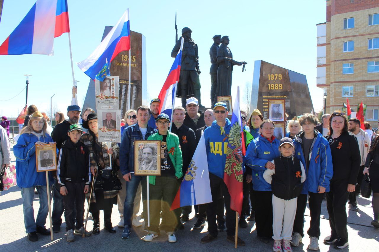Актив ЛДПР в Мегионе почтил память героев в 80-ю годовщину Победы, встав в ряды «Бессмертного полка»