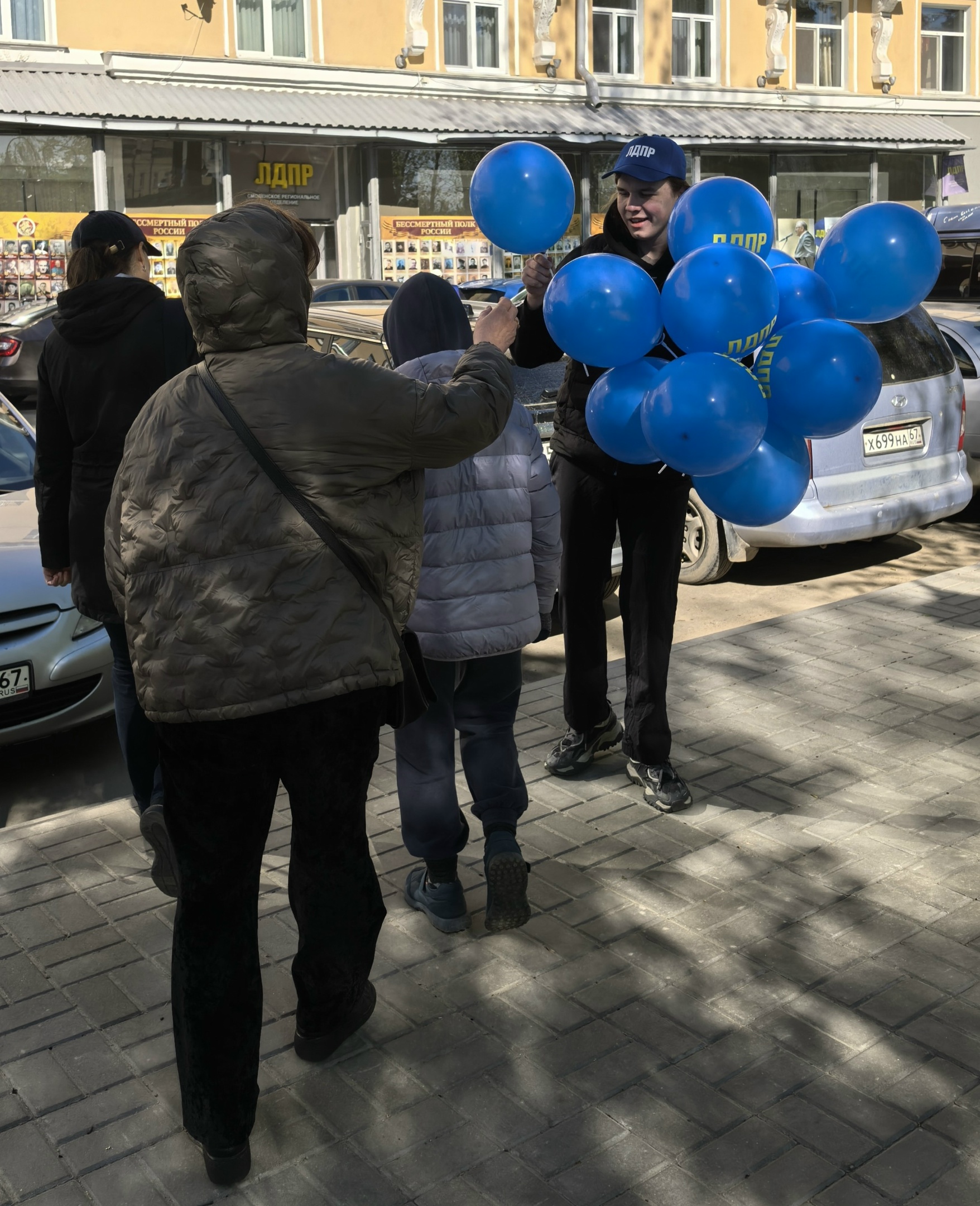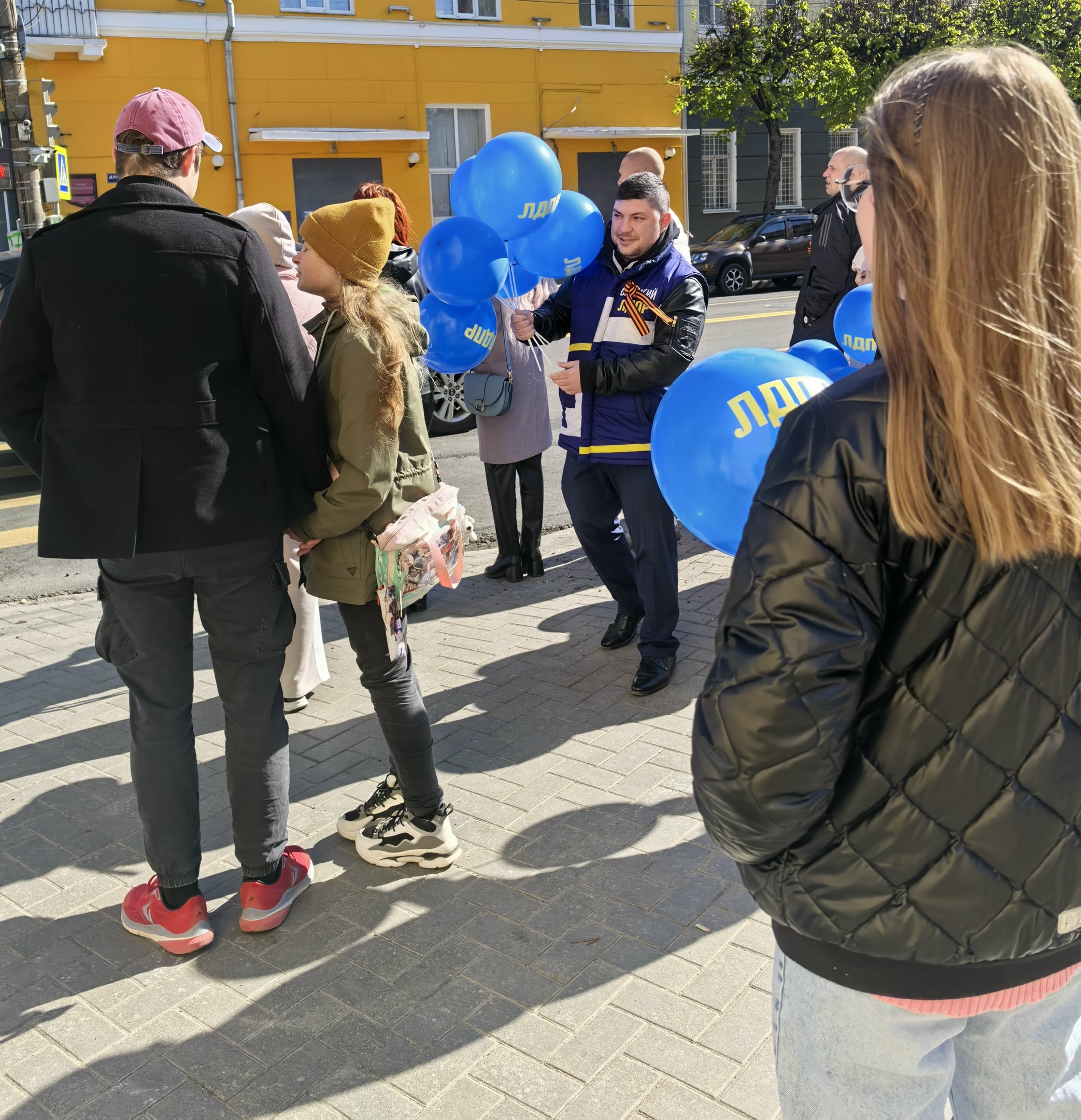 В священный юбилей Победы над фашизмом активисты ЛДПР вышли на улицы Смоленска, чтобы поздравить смолян, разделить с ними праздничное настроение. Партийцы вручили горожанам сотни воздушных шариков, георгиевских ленточек, открыток