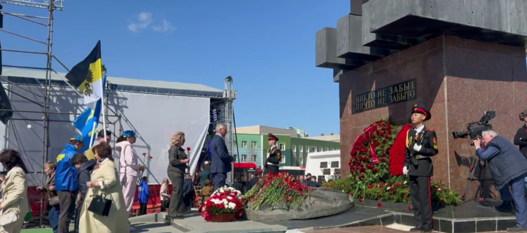 После возложения цветов и минуты молчания Гаврил Парахин обратился к собравшимся с речью, подчеркнув важность сохранения исторической памяти о Великой Отечественной войне и недопустимости переписывания истории.