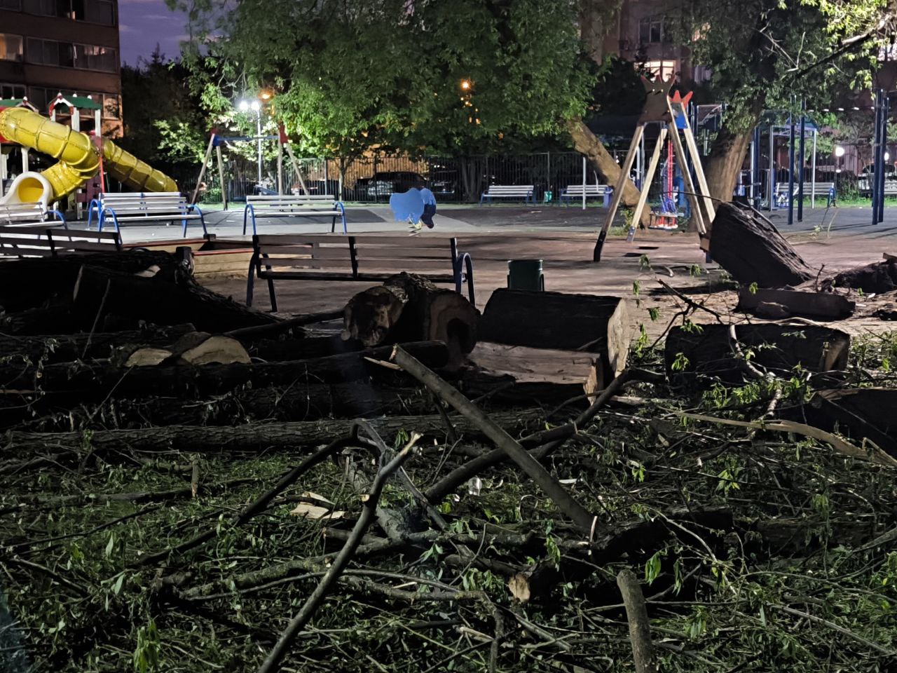 Жительница прислала фотографии детской площадки и рассказала всю историю. Работники коммунальных служб спилили ветхие деревья. И это очень правильно и своевременно, ведь деревья могли рухнуть в любой момент на играющих ребятишек. Но на этом благие намерения коммунальщиков и закончились: бревна и ветки так и остались лежать на площадке и по-прежнему создавать угрозу здоровью детей.